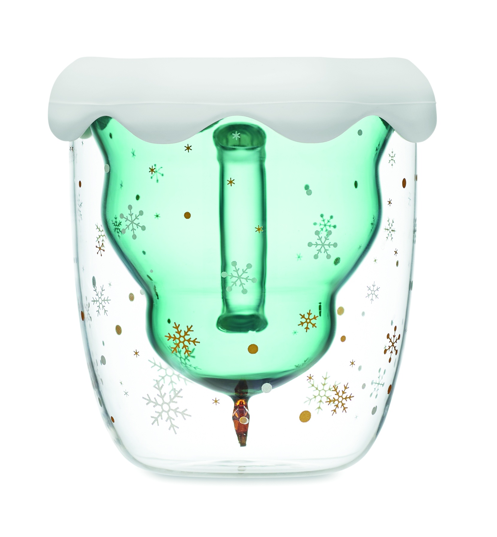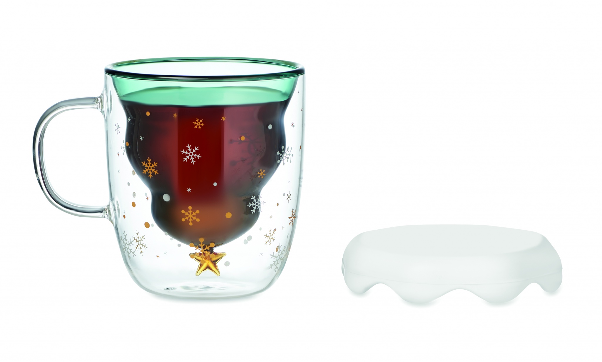 Hooajalise disainiga kaheseinaline borosilikaatkruus silikoonkaane ja alusega. Mahutavus: 250 ml.