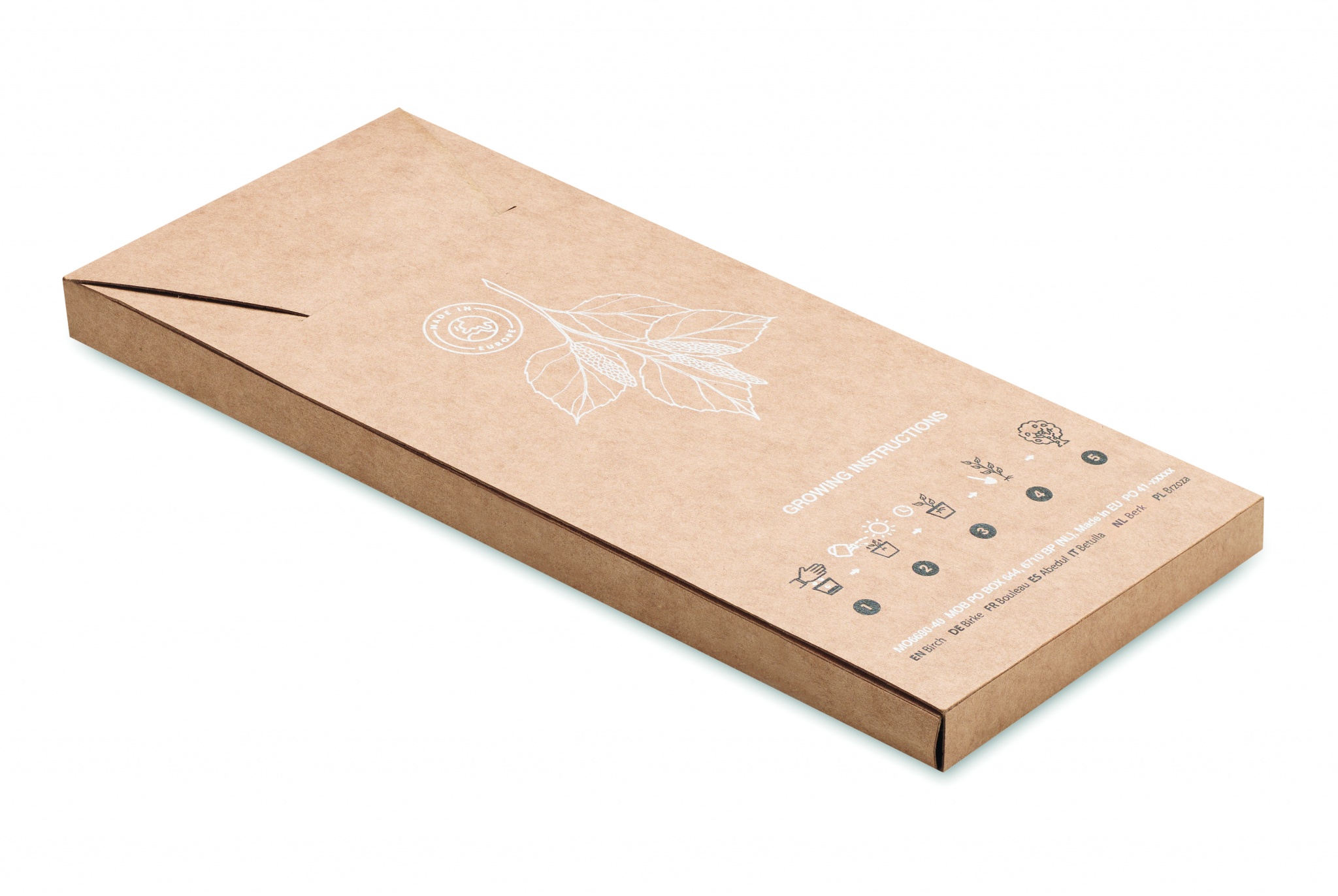 Kasepuidust telefonialus. Tarnitakse 2 osana, mis tuleb ise kokku panna. Sisaldab männiseemneid (pinus nigra), mida saab istutada ja saadud puud kasvavad ca. 30 cm aastas. Valmistatud EL-is.