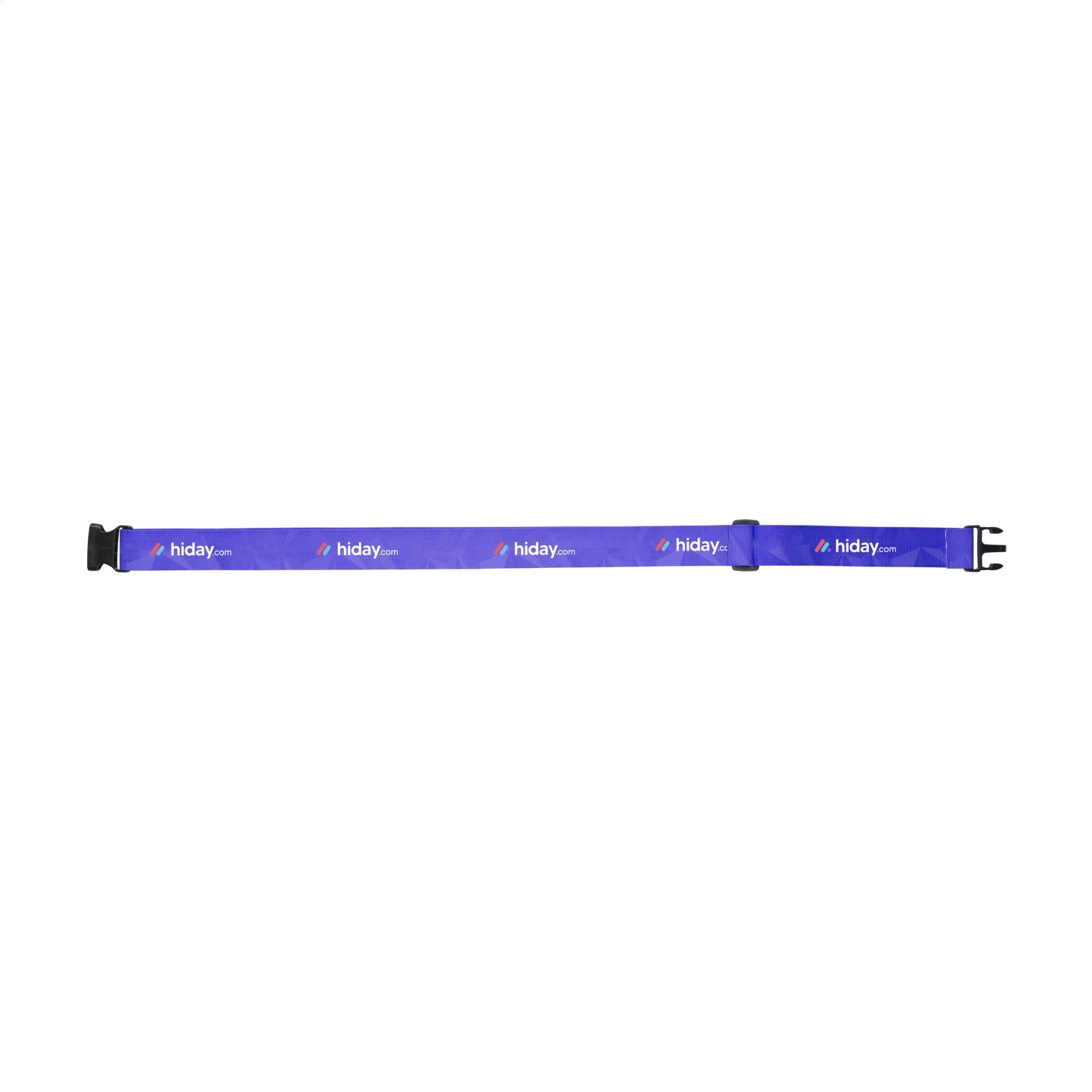 Tugevast polüestrist valmistatud pagasirihm plastikust klõpsava kinnisega. Sisaldab isikupärastatud täisvärviprinti mõlemal küljel. Võimalik ka erineva kujundusega esi- ja tagaküljel. Reguleeritav minimaalselt 130 cm ja maksimaalselt 190 cm. Lai rihm tagab teie kohvrile lisatugevuse ja äratundmise.