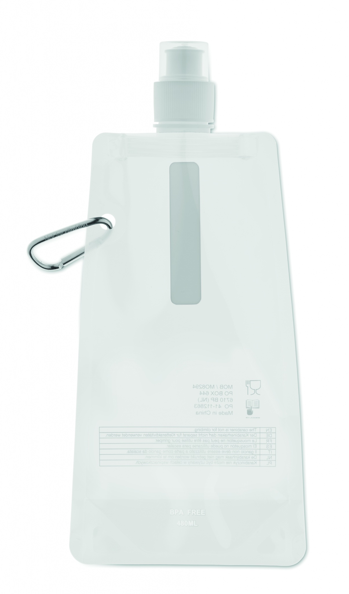 Alumiiniumkarabiiniga kokkupandav veepudel PET-st, mis on BPA-vaba. Mahutavus 480 ml. Lekkevaba.