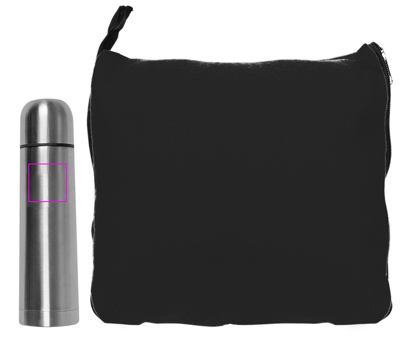 Ideaalne duo! Selle kena komplektiga on teie klientidel kõik, mida vajate kaisuõhtuks või reisiks. Saate kena 2-in-1 fliisteki (180 x 120 cm), mille saab küljes oleva tõmbluku ja 500 ml sisuga termokolbi abil muuta padjaks. Teie logo graveerime kas kolbile või tikandiga tekile. Ühekordselt pakendatud karpi.