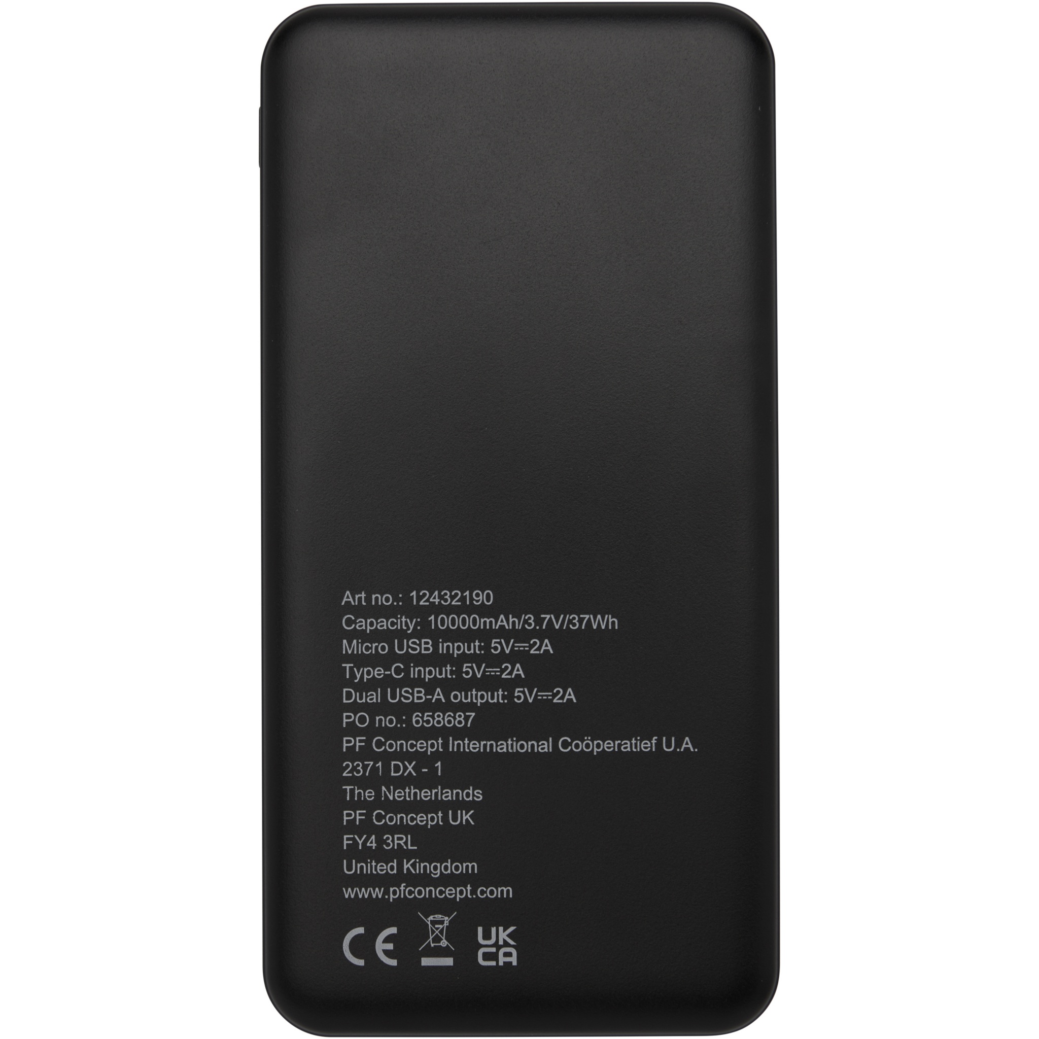 Taaskasutatud ABS-plastist valmistatud toitepank. Toitepank sisaldab kauakestvat A-klassi 10 000 mAh liitiumpolümeerakut kiireks laadimiseks. Toiteindikaatorid näitavad järelejäänud energiataset, nii et teate alati, millal laadida. C-tüüpi sisend 5V/2A, Micro-USB sisend 5V/2A, topelt USB-A väljund 5V/2A, koguvõimsus 10W. Tarnitakse koos 30 cm TPE 2A USB-A kuni Type-C laadimiskaabli, kasutusjuhendi ja jõupaberist kinkekarbiga.