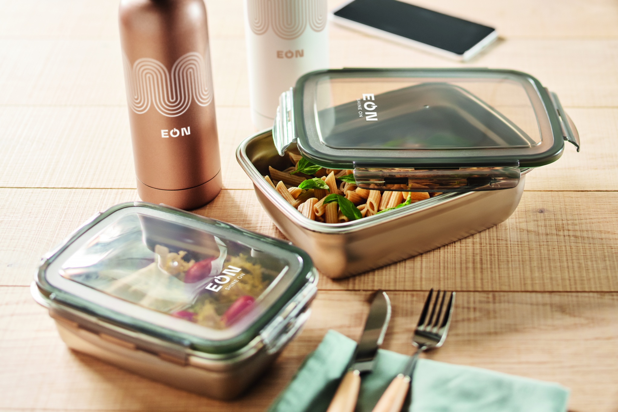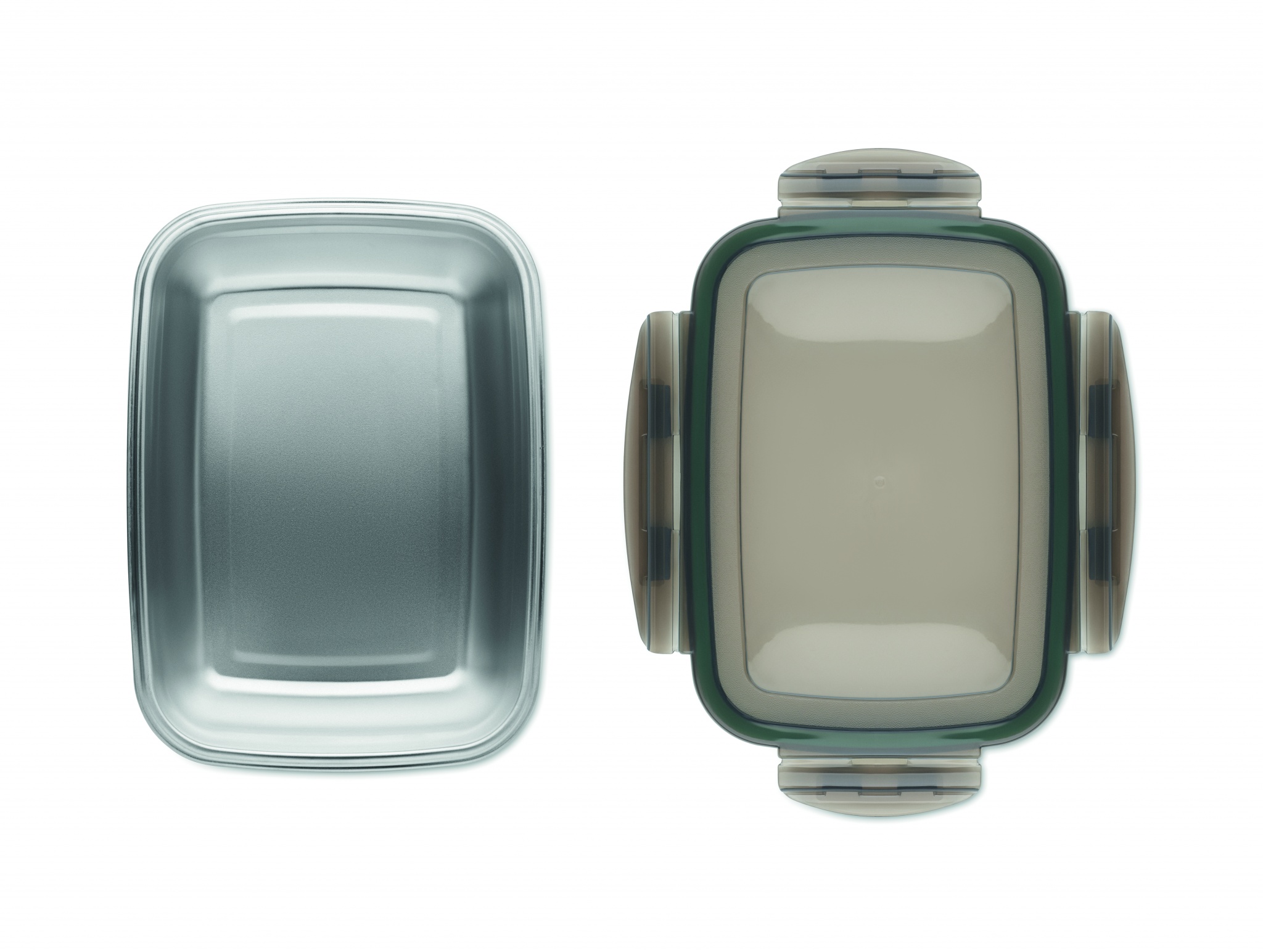 Taaskasutatud roostevabast terasest lõunasöögikarp taaskasutatud PP kaanega ja 4 küljekinnitusega. Mahutavus: 850 ml.