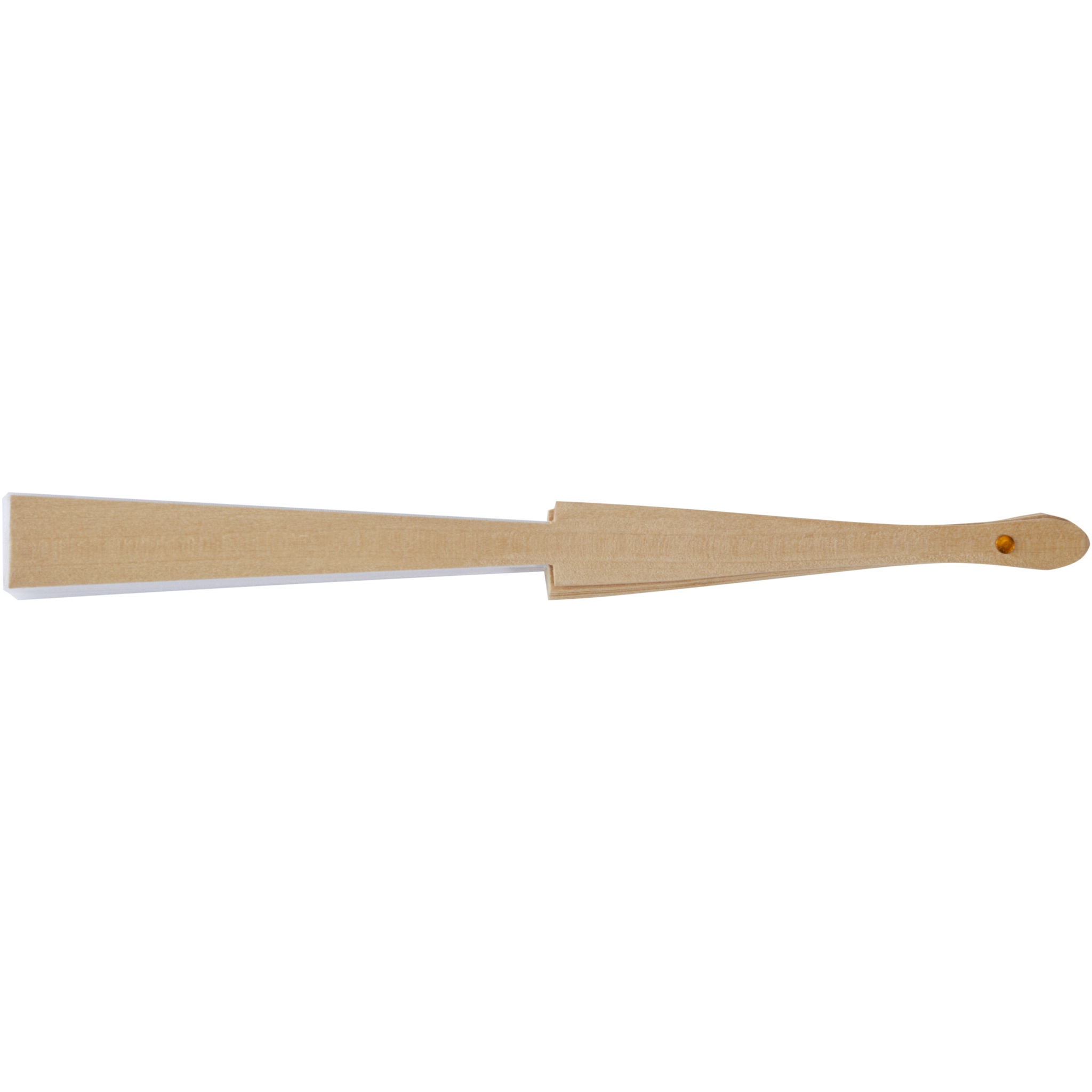 Puidust ja polüestrist valmistatud käsiventilaator, saadaval laias värvivalikus.