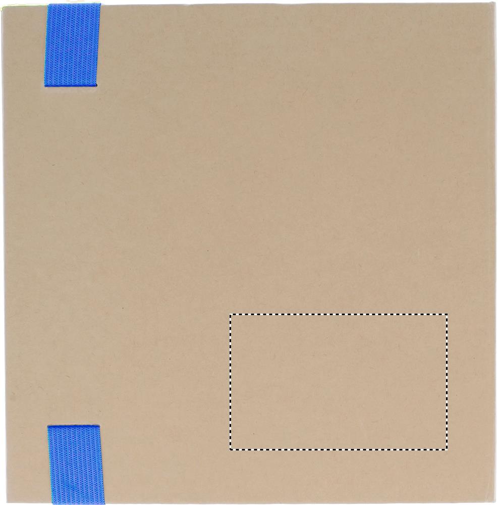 Taaskasutatud kartongist kaanega märkmik. 100 tavalise lehega märkmik. 3-osaline märkmeplokk. Suured ja keskmised kollased märkmeplokid ja 5 erinevat värvi lehemarkerit. Sobiv nööbiga pastapliiats paberist tünniga. Pliiatsihoidja. Elastne riba sulgemine.
