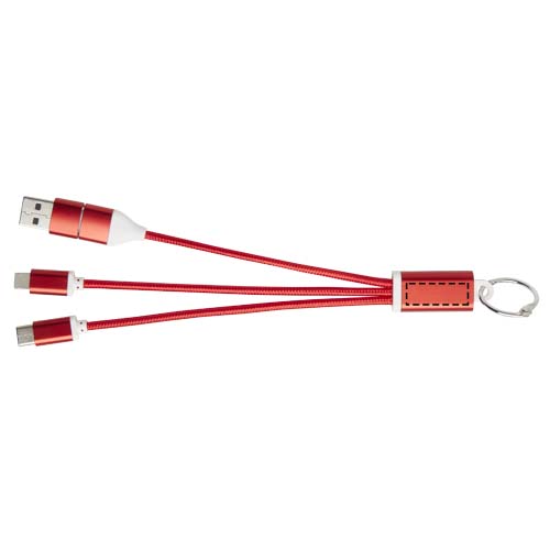 Metallist 4-in-1 taaskasutatud alumiiniumist laadimiskaabel võtmehoidjaga, Punane
