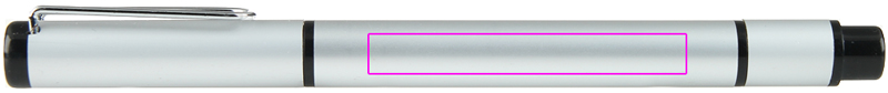 Alumiiniumist pastapliiats, mille vastasküljel on musta kirjaga täidis ja kollane marker. Graveerime teie logo varrele.