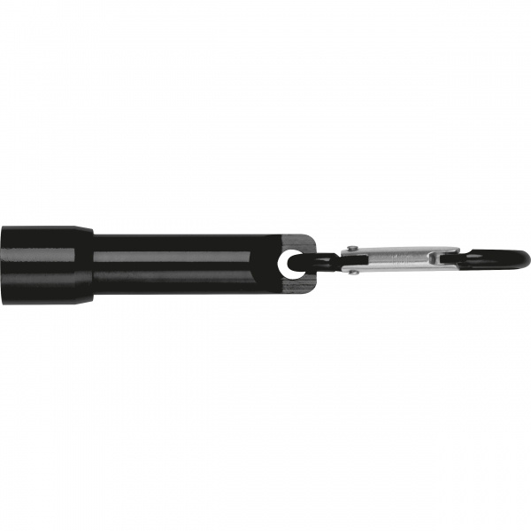 Mini taskulamp karabiiniga, mis on valmistatud taaskasutatud alumiiniumist. Komplektis 4 nööppatareid. Logo graveeritakse taskulambile.