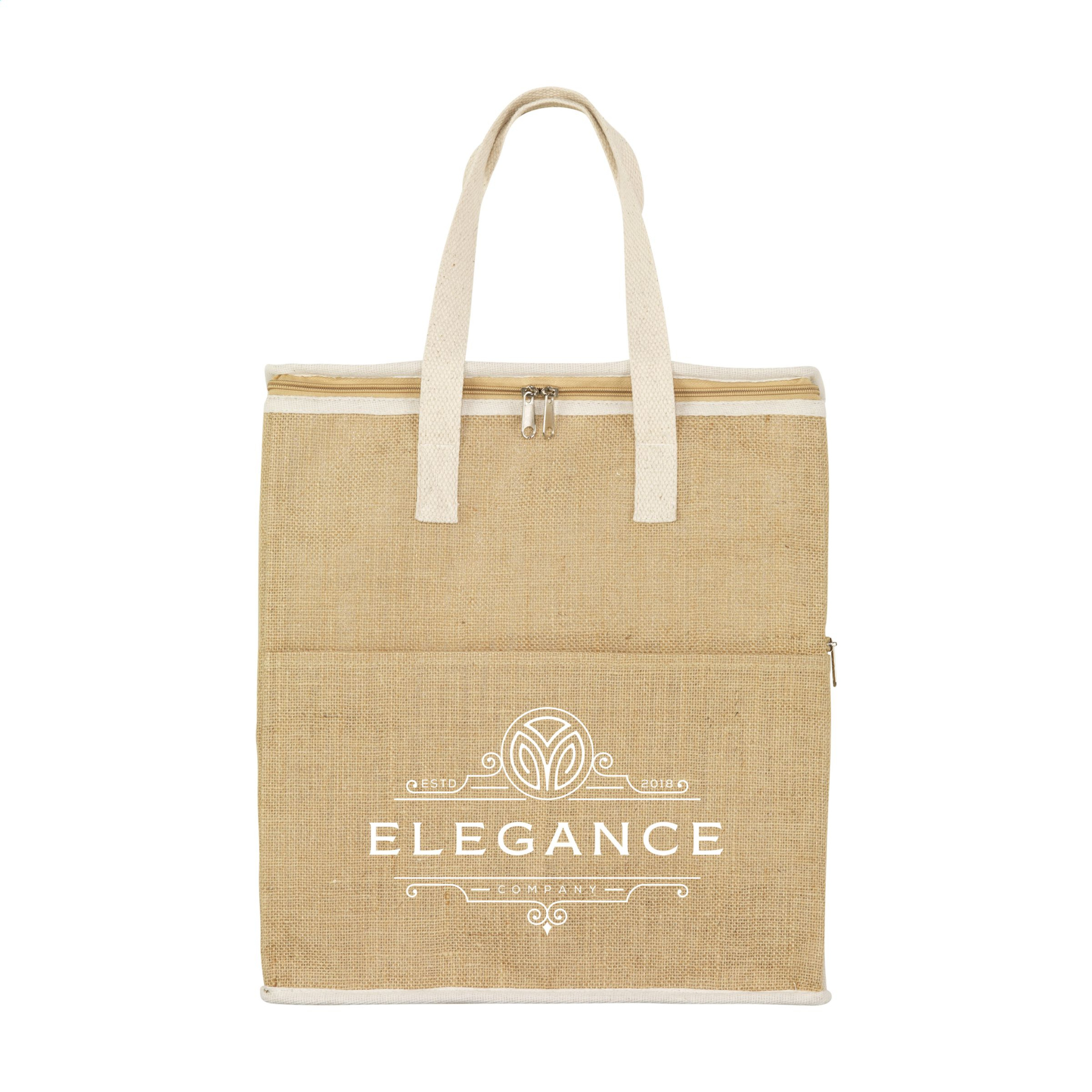 Vau! See külmakott on valmistatud tugevast džuudist ja puuvillasest materjalist, mille sisemus on isoleeritud. Selles väga mahukas külmakotis hoia oma sööke ja jooke päeva jooksul jahedana. Sellel kotil on tõmblukk ja esitasku, mis pakuvad täiendavat hoiuruumi. Need lisataskud on käepärased selliste asjade hoidmiseks, mida ei vaja jahutada, näiteks telefoni või rahakoti. Tarnitakse kootud puuvillase käepidemetega. Mahutavus ca. 24 liitrit.