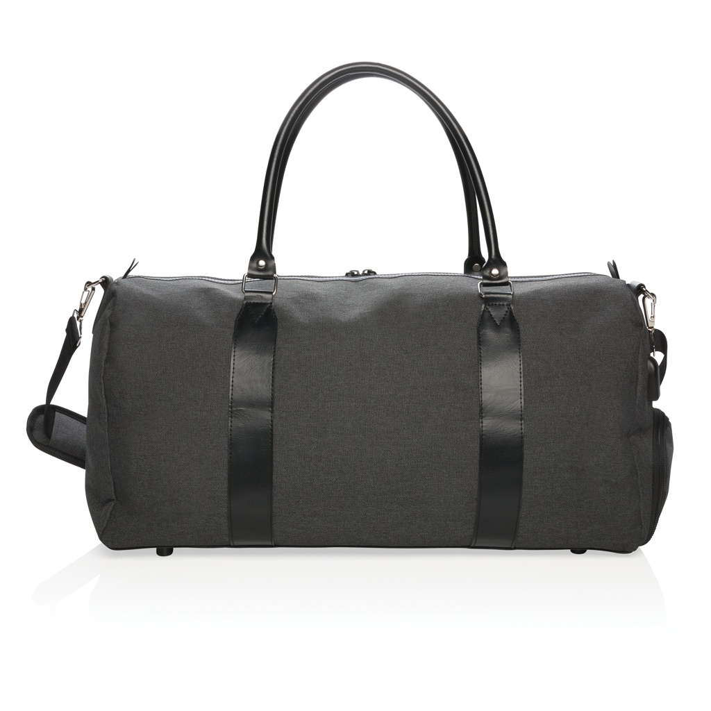Moodne ja minimalistlik 600D polüestrist PU sangade ja mugava õlarihmaga nädalavahetusekott. Suur põhisahtel, kus on palju ruumi teie nädalavahetuse vajadustele või spordivarustusele. Ühendage oma toitepank hõlpsalt integreeritud USB A laadimisporti ja laadige oma telefoni või tahvelarvutit liikvel olles. Paremal on ka kiire juurdepääsuga tasku. PVC vaba.