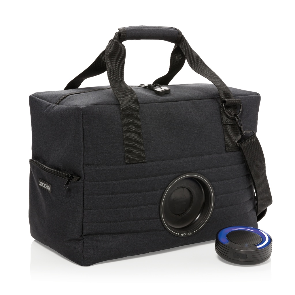 Suur trendikas külmakott eemaldatava veekindla IPX5 juhtmevaba kõlariga ja värvi muutva LED-iga. Lihtsalt keerake kõlar välja ja asetage see oma lauale. Kuni 5 tundi mänguaega. Mahutab kuni 32 purki. Kaasa arvatud õlarihm. Registreeritud disain®