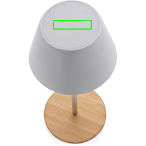Luksuslik laualamp, mis on valmistatud RCS-sertifikaadiga taaskasutatud ABS-plastist, taaskasutatud alumiiniumist ja FSC-sertifikaadiga 100% bambusest. Taaskasutatud kogusisaldus: 40% eseme kogukaalust. RCS-sertifikaat tagab taaskasutatud materjalide täielikult sertifitseeritud tarneahela. Laualamp töötab ühe laadimisega kuni 18 tundi ja seda saab uuesti laadida 2 tunniga. A-klassi 1800 mAh aku ja C-tüüpi sisendiga (5V/1A) Kahe režiimiga (soe valgus ja valge valgus), mida saab reguleerida põhjas oleva puuteanduriga. Taaslaetav USB-C kaudu. Pakitud FSC® segupakendisse. IPX 4 veekindel.