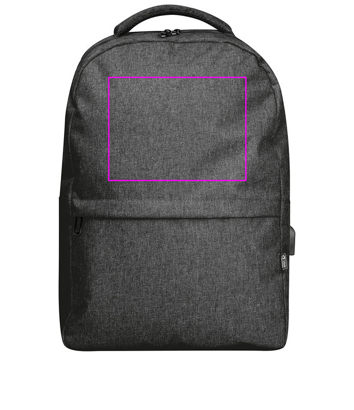 rPET-seljakott USB-pordi, polsterdatud rihmade, sülearvuti sahtel, eesmise sahtel ja vargusvastase sahtliga. Trükime teie logo esiosale.