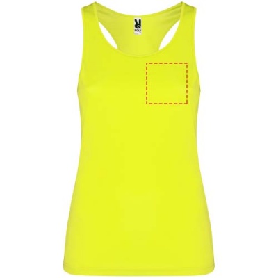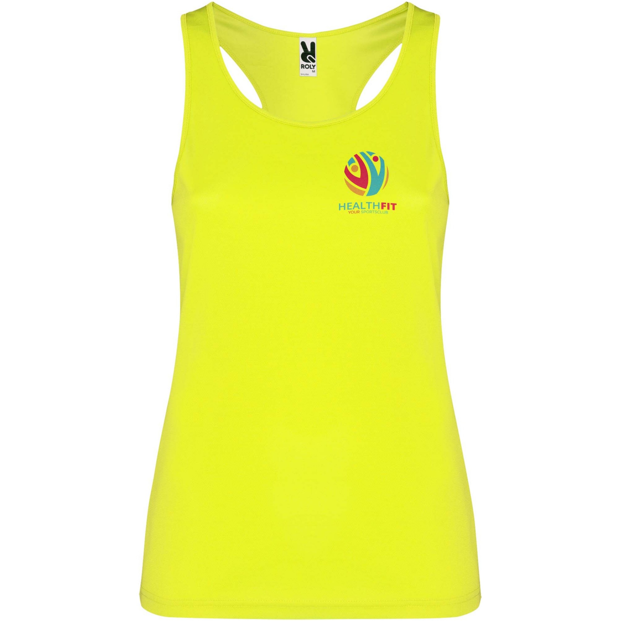 Tehniline, hingav, kergesti pestav ja kergesti kuivav kangas. Soonilised käeaugud ja kaelus. Racerback ja küljeõmblused. Eemaldatav etikett.