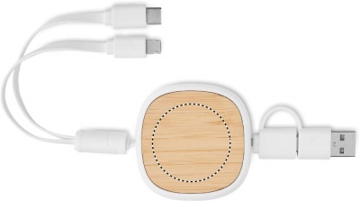 Mitme USB-liidese ülestõstetav ABS-laadimiskaabel koos bambusest detailiga. Sisend: 2-in-1 Type-C ja Type-A. Väljund: Type-C ja 2-in-1 micro-B pistik. Kaabli pikkus: 90 cm.
