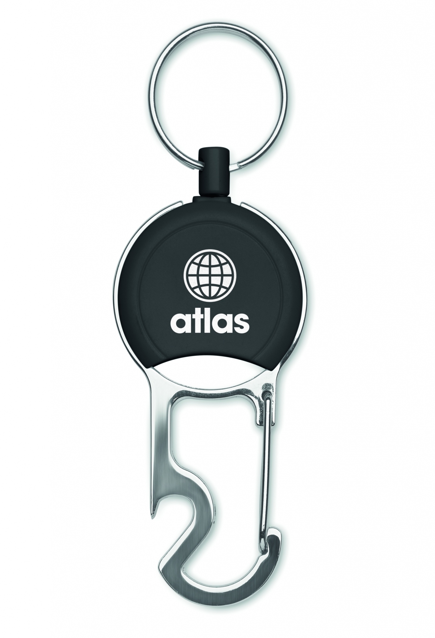 Sissetõmmatav ABS-st märgihoidja klambri, võtmehoidja ja pudeliavajaga.