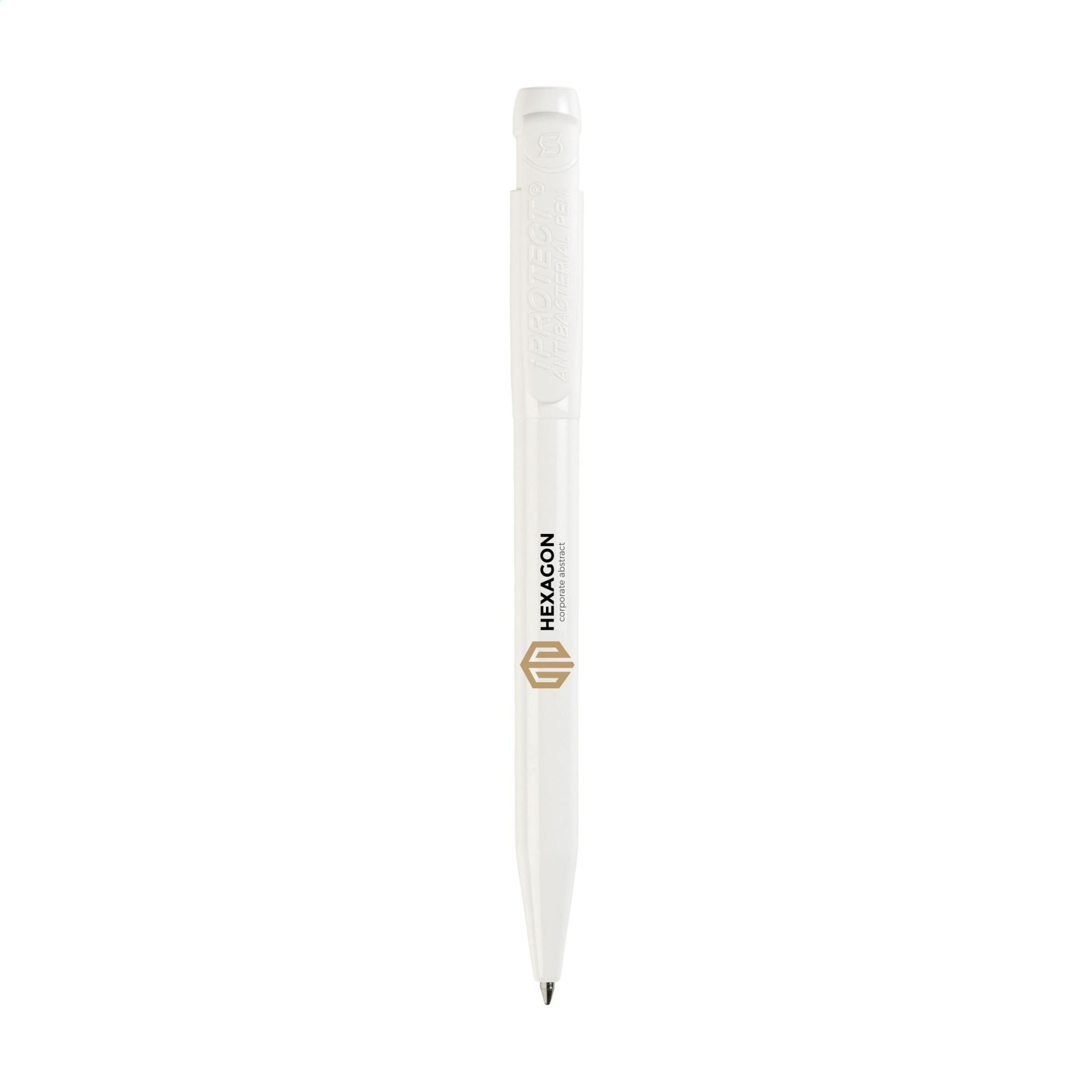 Stilolinea® pastapliiats sinise tinditäite ja värvilise klambri/nupuga. Sellel pastapliiatsil on antibakteriaalne toime. Valmistatud Itaalias.