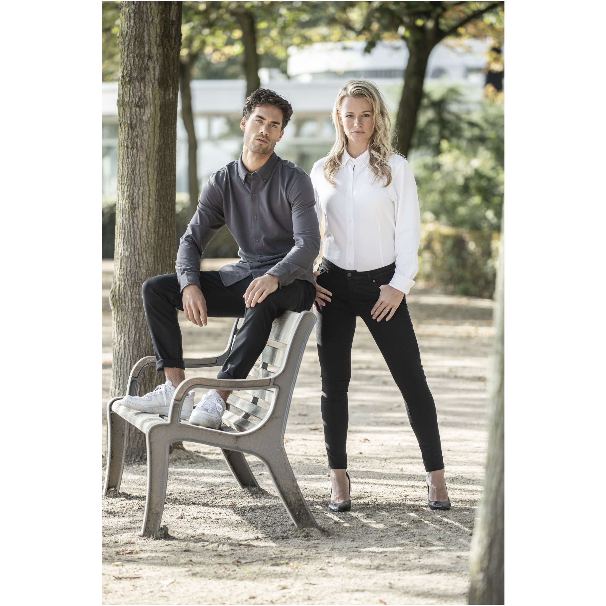 Isekangast krae. Stretch kangas. Ühekordse voldiga reguleeritav mansett. Nööpidega krae. Vormitud õmblused ja kitsenev vöökoht meeldivaks istumiseks. Satiinist torustik kaela siseküljel. Sobivuse järgi värvitud graveeritud nupud. Kootud põhisilt.
