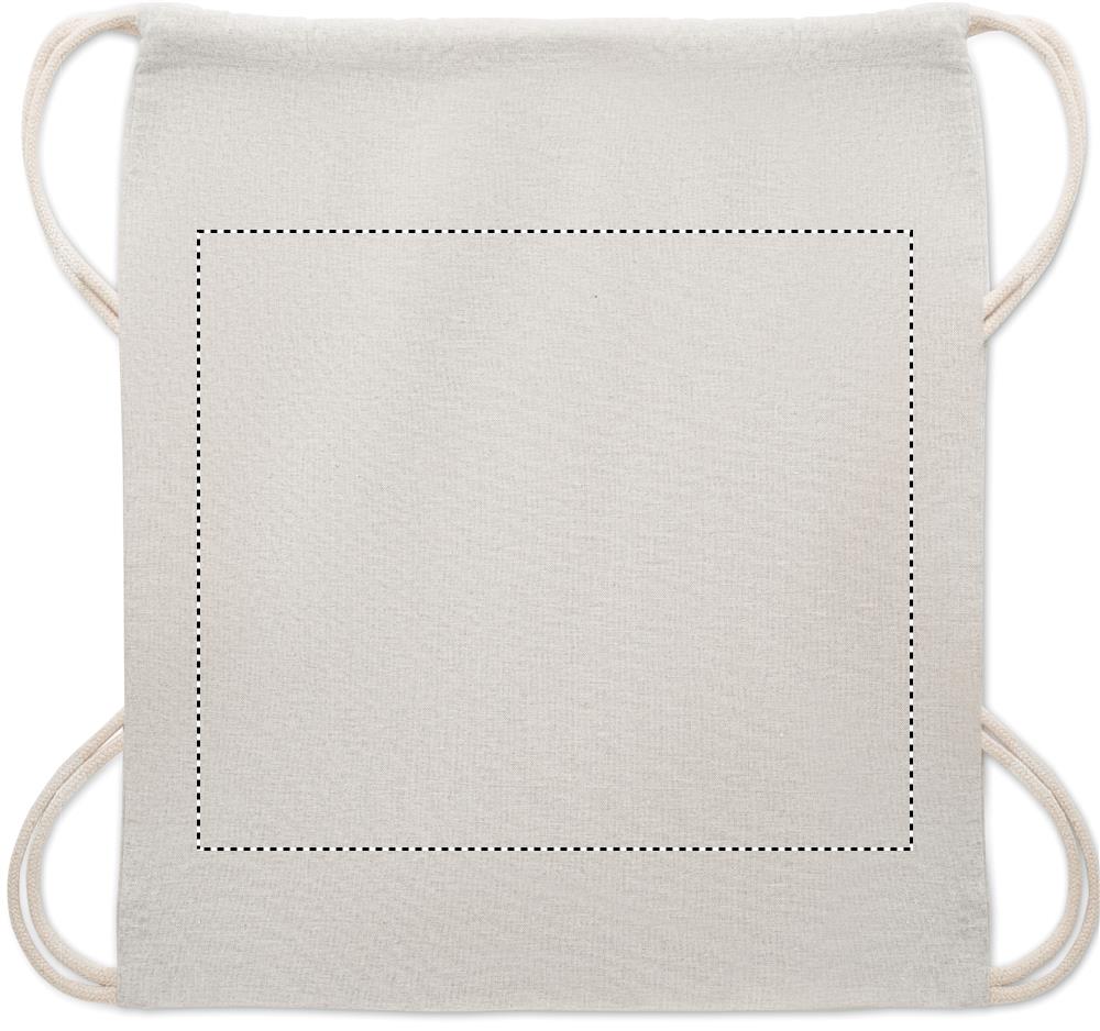 Pingutusnööriga kott taaskasutatud puuvillast (80% taaskasutatud puuvill, 20% tavaline puuvill). 140 gr/m².