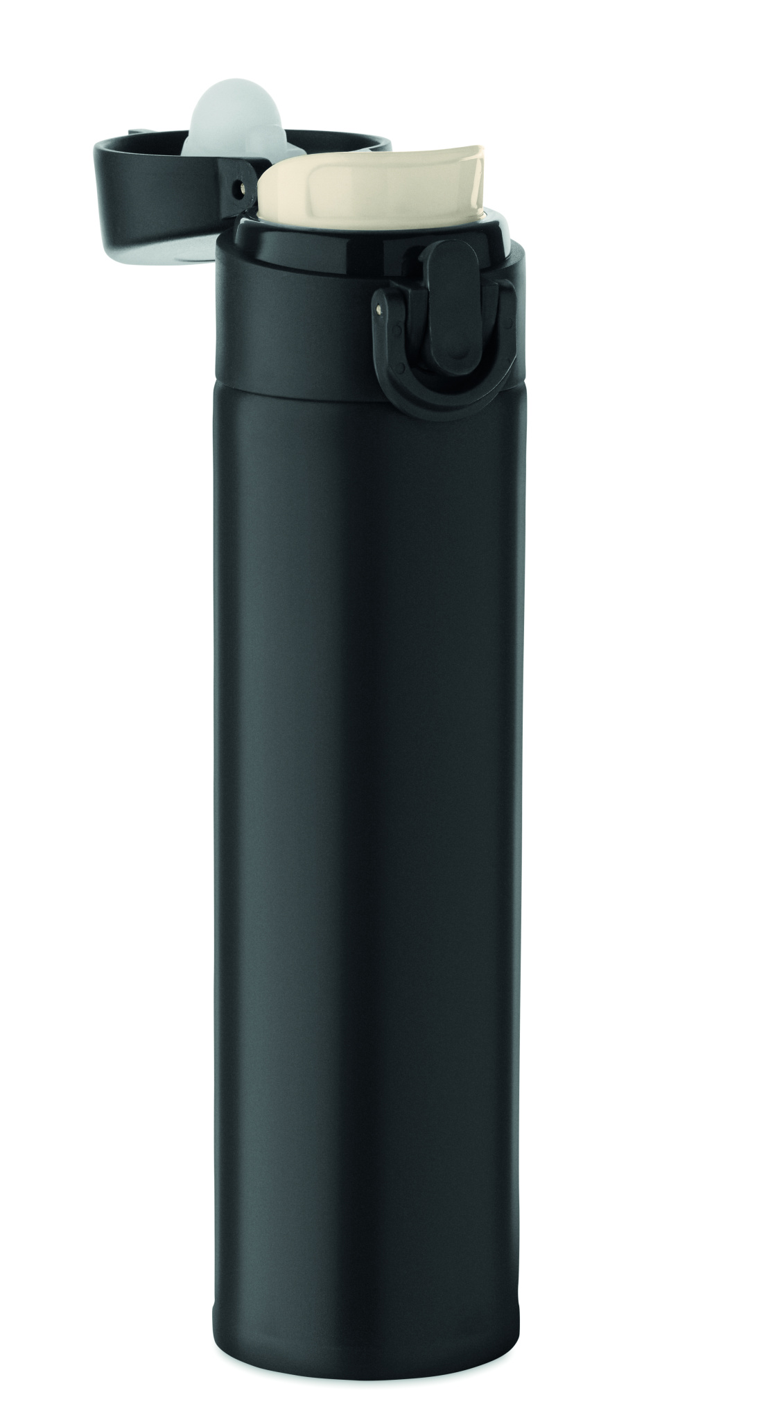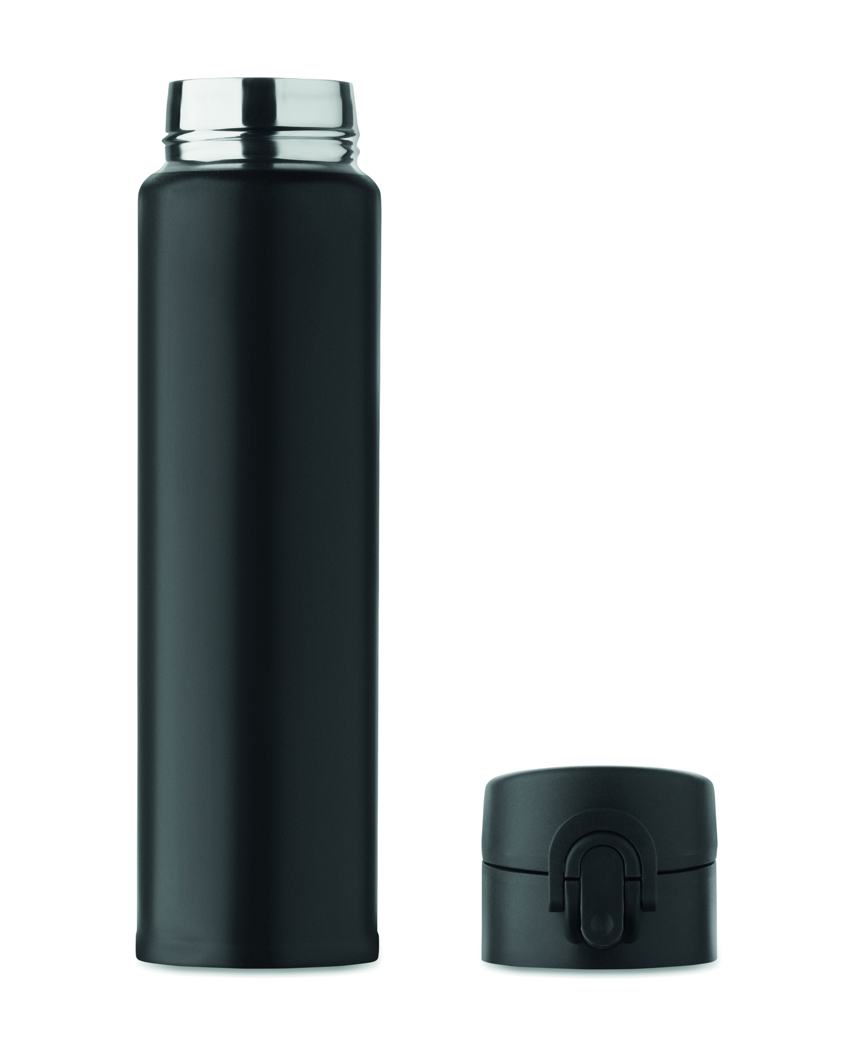 Topeltseinaga joogipudel taaskasutatud roostevabast terasest (90% taaskasutatud roostevabast terasest ja 10% roostevabast terasest), turvalukuga kork, mis avaneb sellele vajutades. Lekkevaba. Maht: 300 ml.