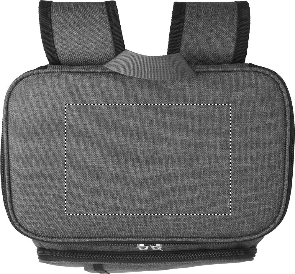 Külmekott või välipiknikuseljakott 2-toonist 600D RPET-ist koos 2 inimese lauatarvikutega. Sellel on roostevabast terasest nuga ning PP-kahvel, lusikas ja tass.