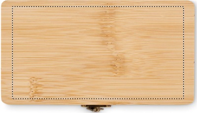 Bambukotelossa oleva työkalusarja jossa on 24 erilaista ruuvipäätä.