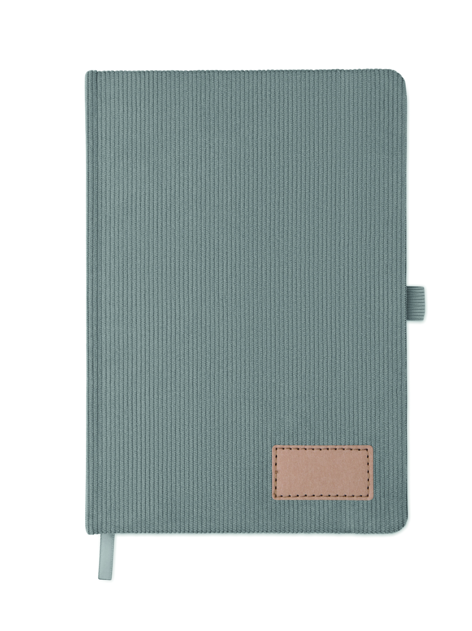 A5-muistikirja kovalla RPET-polyestersamettikannella, 192 viivoitettua kierrätyspaperisivua (70 g/m²). Nidottu, kuminauhalukko, kynäpidike, kirjannauhamerkki ja pesty kraft-paperitag.