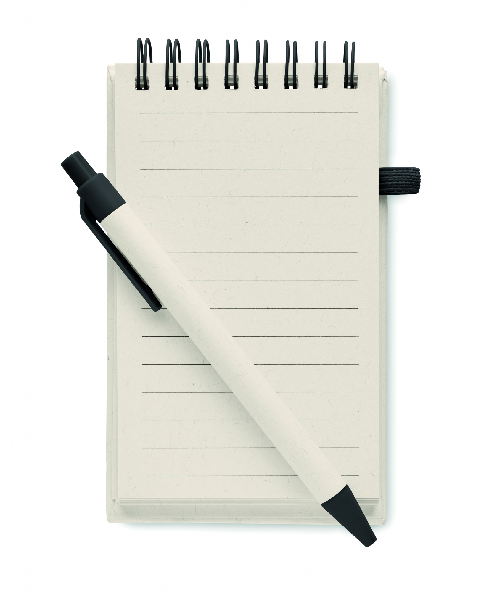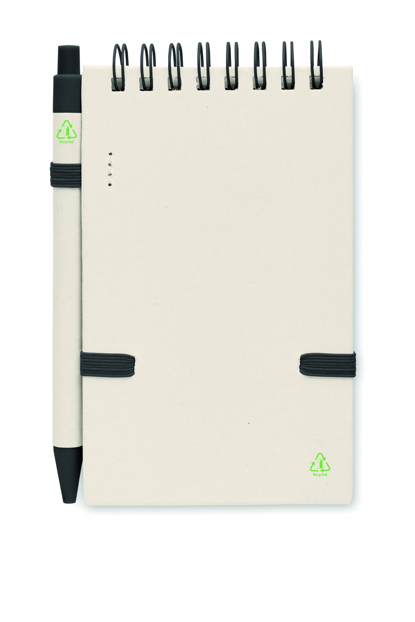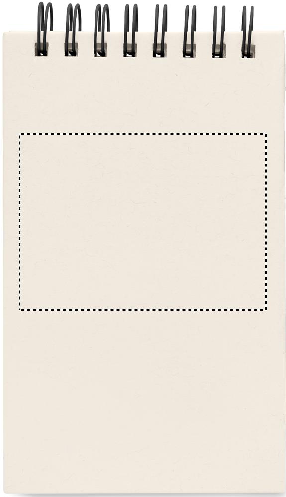 A6 kokoinen muistikirja kierrätyskartongista (70% maitopurkeista tehtyä kartonkia ja 30% kierrätyspaperia) Muistikirjassa on 70 tyhjää sivua, kierresidonta, kiinnitys kuminauhalla ja kynäpidike. Settiin kuuluu samanvärinen kuulakärkikynä sinisellä musteella.