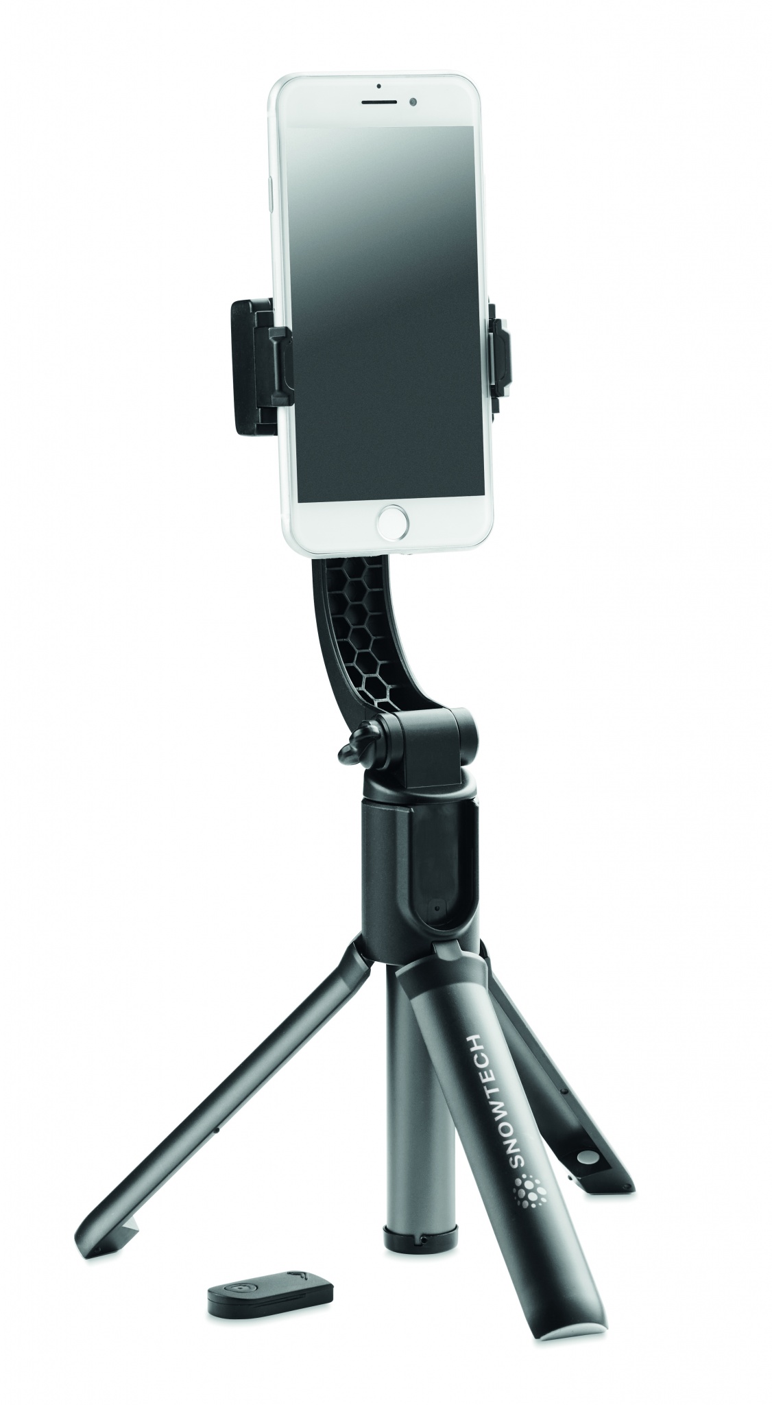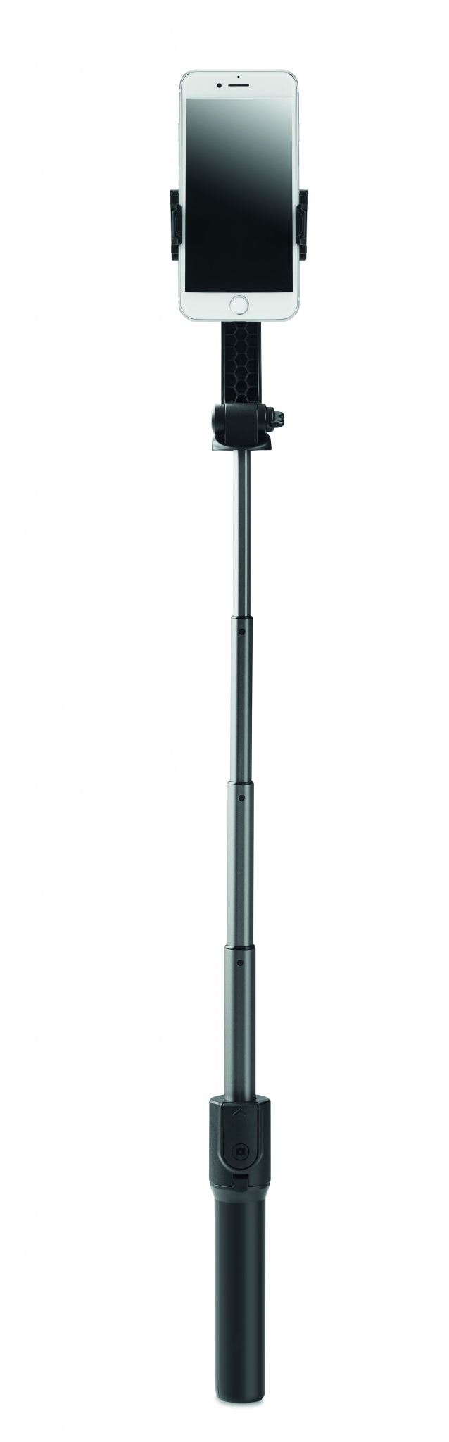 Teleskooppinen älypuhelimen pidike ja jalustatoiminnolla varustettu vakautin. 1-akselinen kardaani, 400 mAh LiB-akku.