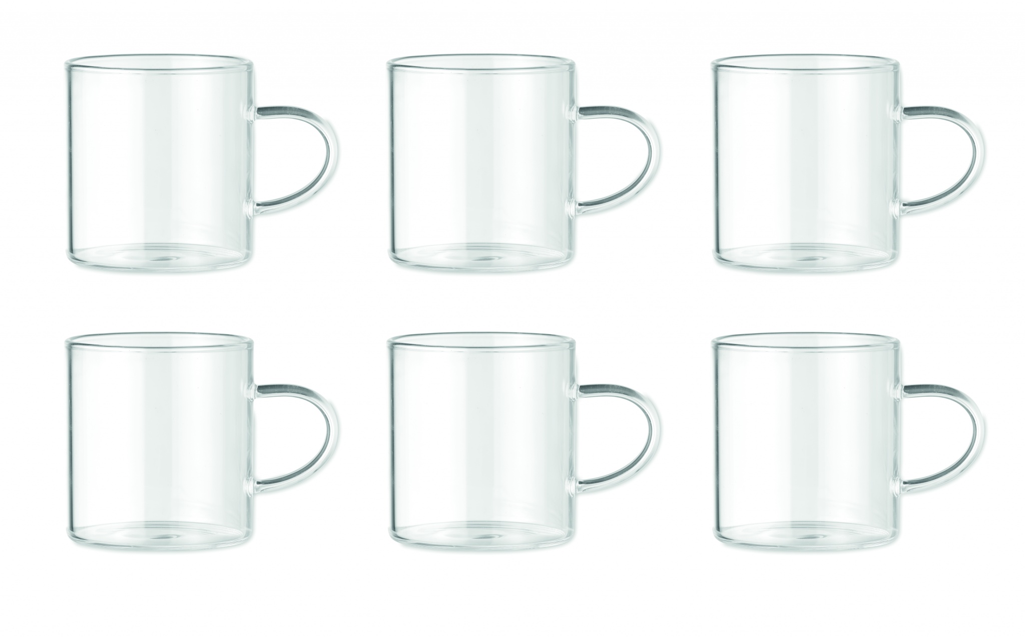 Bambusta valmistettu kuppiteline, 6 x 200 ml borosilikaattilasi kupilla. Luonnollisen materiaalin (bambu) vuoksi, tuotteiden värissä/ koossa saattaa olla erinäisyyksiä ja tämä voi vaikuttaa painatuksen lopputulokseen.