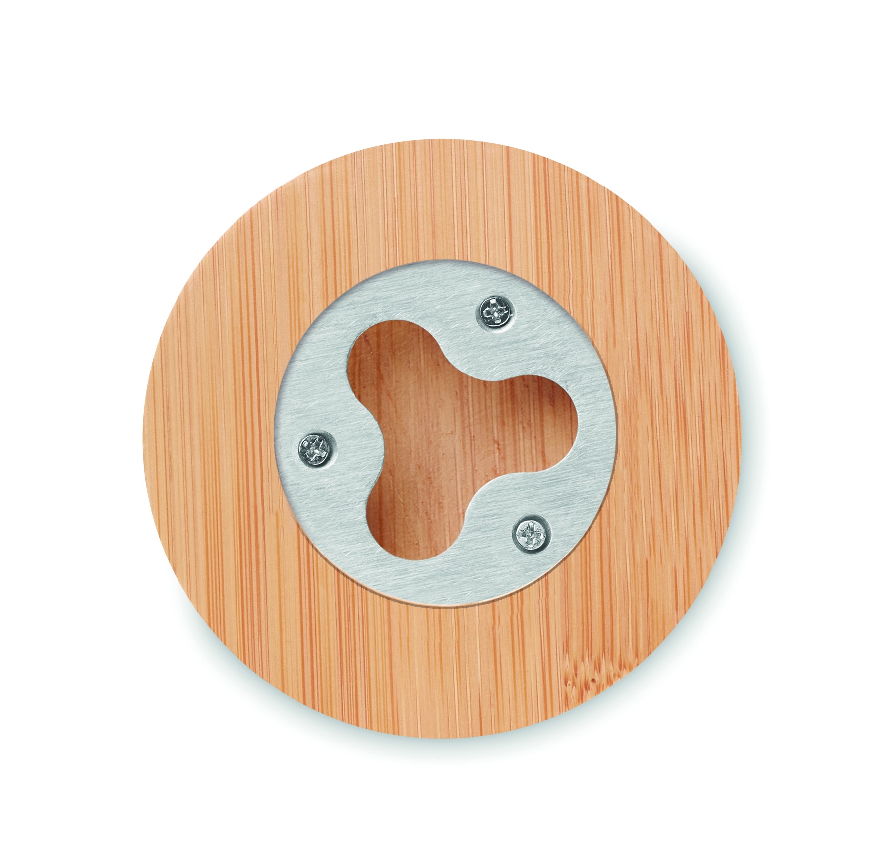 Bambuinen pullonavaaja/ lasinalunen. Luonnollisen materiaalin (bambu) vuoksi, tuotteiden värissä/ koossa saattaa olla erinäisyyksiä ja tämä voi vaikuttaa painatuksen lopputulokseen.