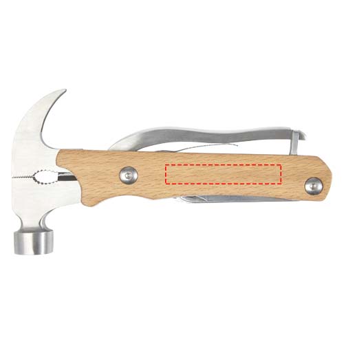 Vahva, kestävä ja kompakti monitoimityökalu, joka on valmistettu laadukkaasta ruostumattomasta teräksestä pyökkipuukahvoilla. Välttämätön varuste kaikille partiolaisille, nikkareille ja ulkoilijoille. Valmistukseen käytetyn pyökin alkuperä on kestävä, ympäristöystävällinen ja sosiaalisesti vastuullinen. Monitoimityökalun avattu koko on 24 x 13 x 2 cm, suljettu koko on 17,5 x 9 x 2 cm ja siinä on 10 toimintoa: suuret kärkipihdit, vakiopihdit, vaijerileikkuri, vasara, viila, talttapäinen ruuvimeisseli, ristipäinen ruuvimeisseli, saha, veitsi ja lukko. Toimitetaan käyttöoppaan kanssa uusiokartonkisessa lahjapakkauksessa, jonka koko on 20,5 x 10 x 3,5 cm. Laserkaiverrusta suositellaan kestäväksi tulostusvaihtoehdoksi.