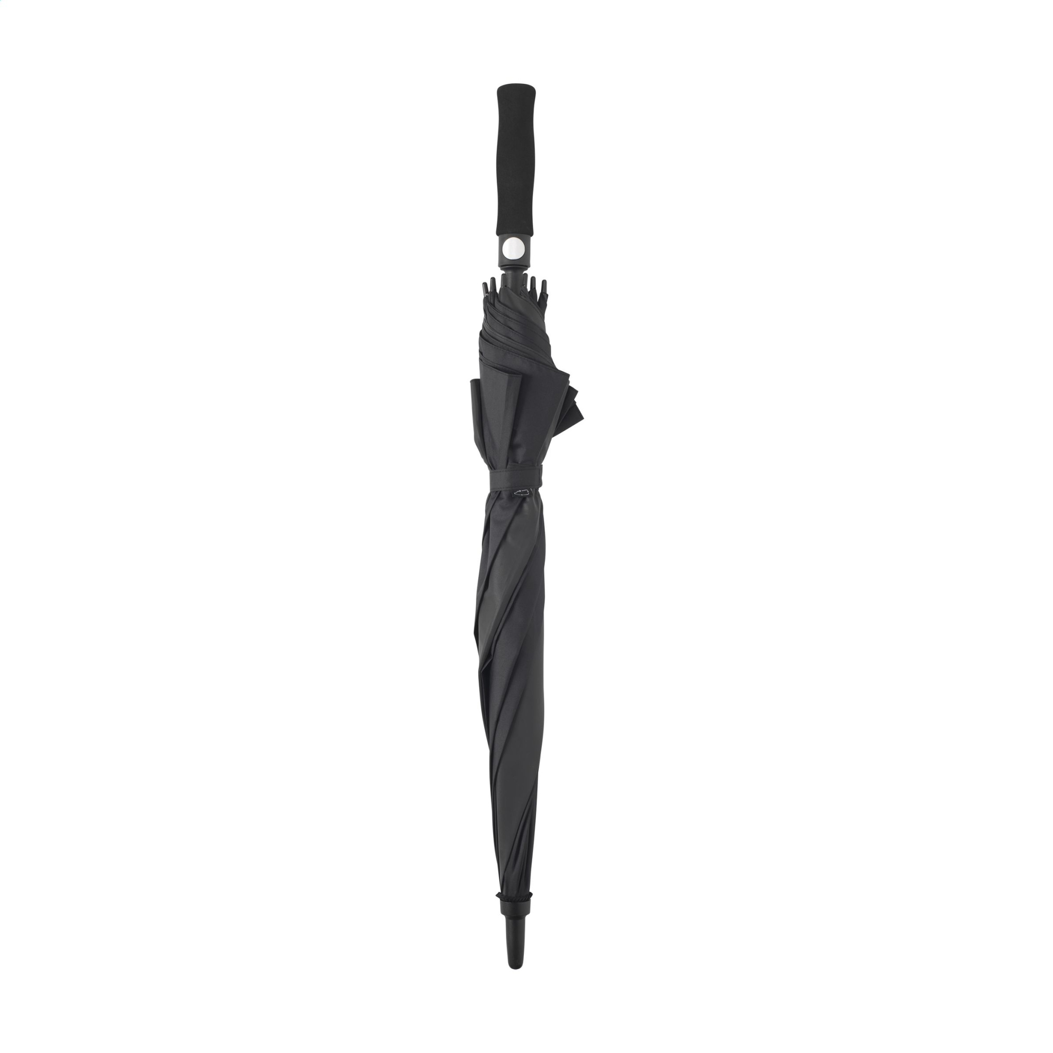 Vau! Sateenvarjo 190T RPETpongee polyesterikatoksella. Tässä sateenvarjossa on kaksi huomaamatonta, heijastavaa osaa, jotka sulautuvat sateenvarjon muotoiluun päivänvalossa. Nämä heijastavat osat syttyvät, kun ne tarttuvat valoon, jolloin käyttäjä näkyy pimeässä. Automaattinen teleskooppijousitus (automaattisesti aukeava), lasikuiturunko, metallivarsi, pehmeä EVA-kahva ja tarrakiinnitys. RCS-sertifioitu. Kierrätysmateriaalia yhteensä: 17 %.