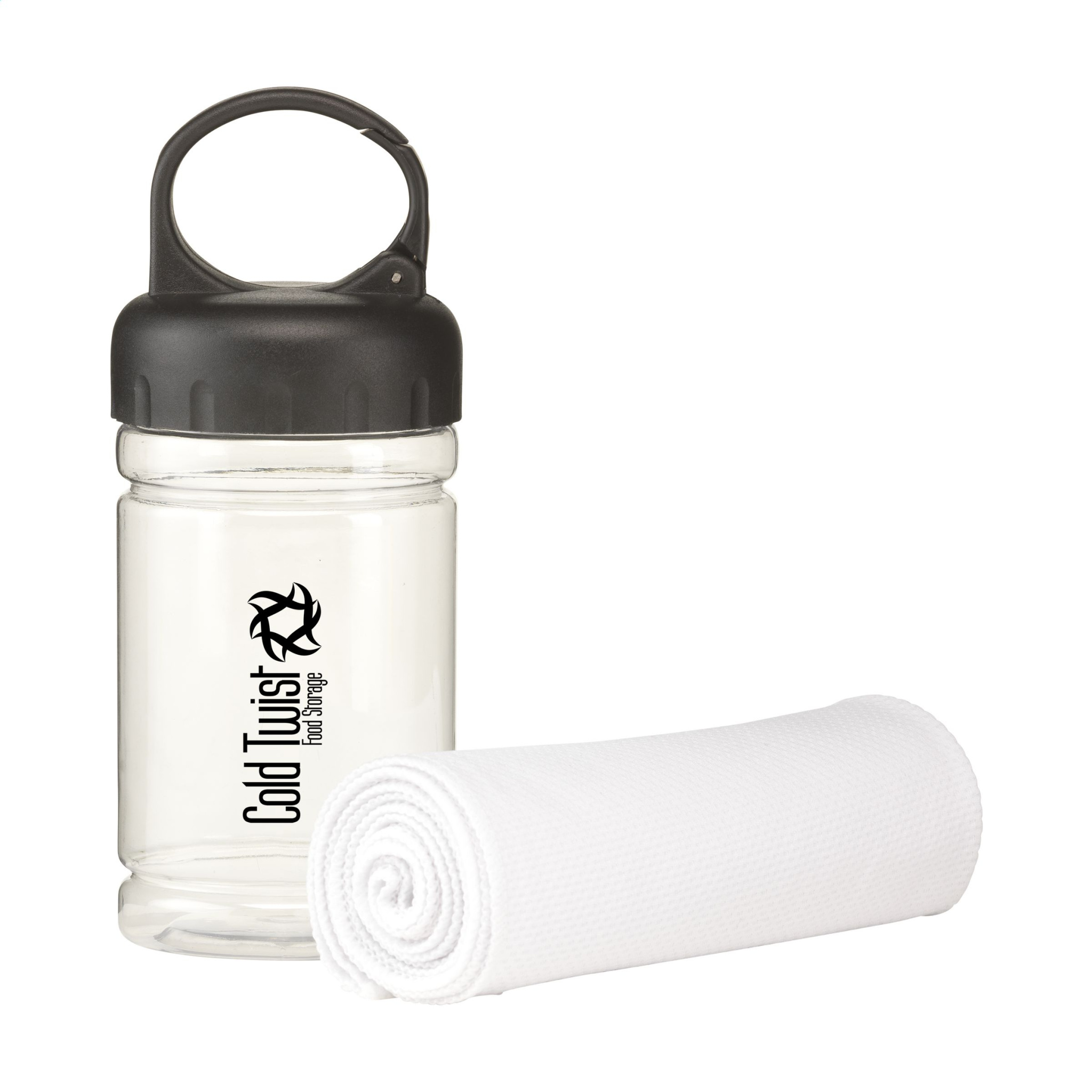 Erityinen jäähdytyspyyhe 100 % polyesterista. Kylmään veteen upotettuaan tämä pyyhe on tehokas jäähdytysväline ja ehkäisee auringonpolttamilta. Koko 30 x 80 cm. Ihanteellinen käytettäväksi kaulan viileänä. Toimitetaan läpinäkyvässä kotelossa, jossa on ABS-kierrekorkki ja karabiinikoukku.