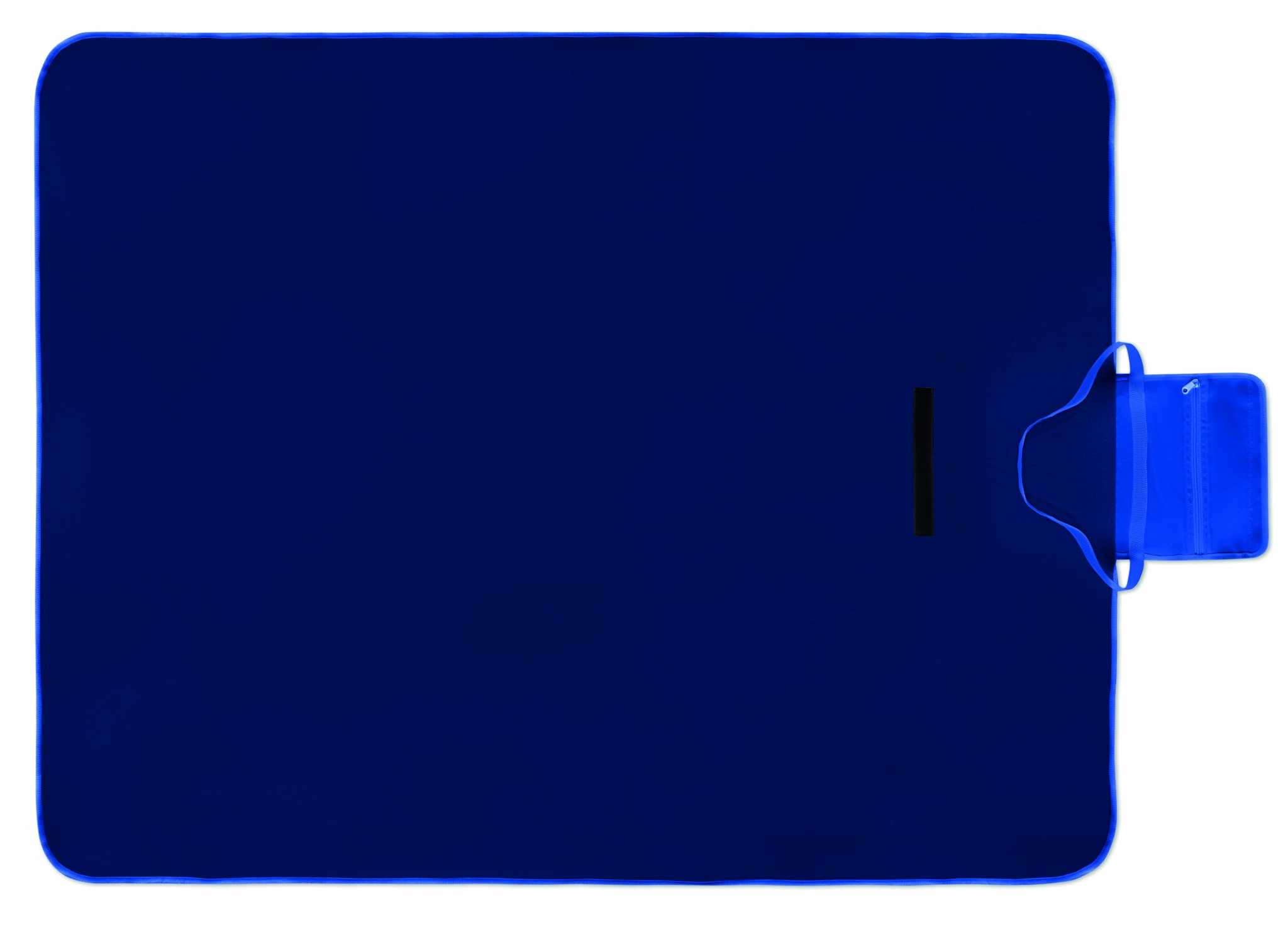 Foldable fleece blanket with plastic coated PEVA reverse side.
