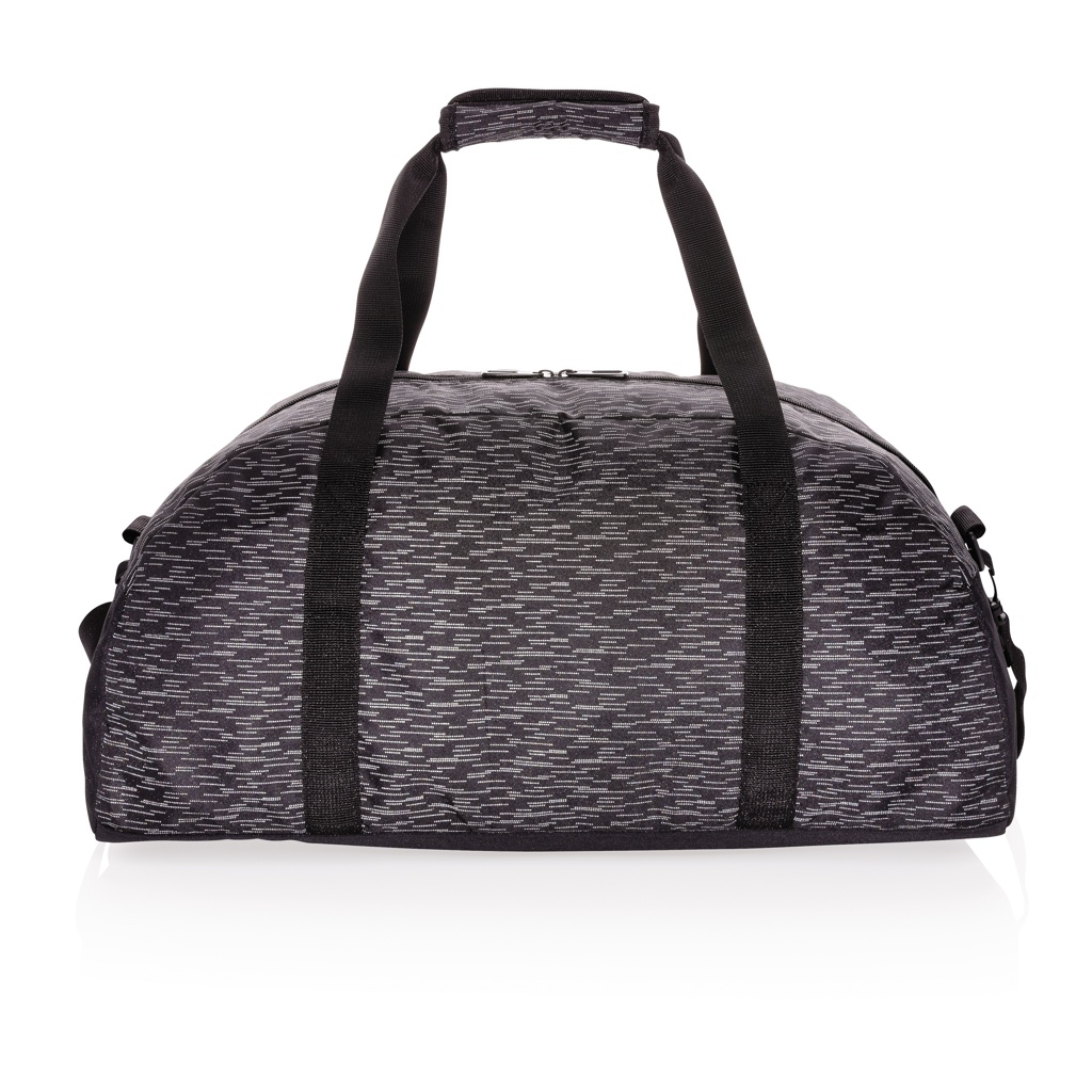 Heijastava RPET viikonloppulaukku AWARE™ -jäljitysaineella, musta