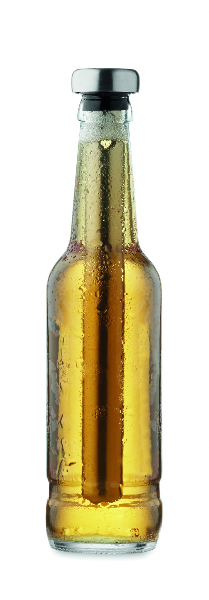 Ruostumattomasta teräksestä valmistettu pullonavaaja ja juomien jäähdytystikku. Jäädytyskylmäkeppi n. 45 minuuttia ja työnnä se sitten pulloon ja nauti kylmästä juomastasi.