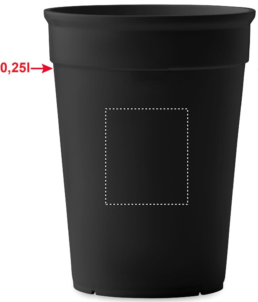 Uudelleenkäytettävä yksiseinäinen kahvimuki kierrätetystä PP:stä. Tilavuus: 250 ml.