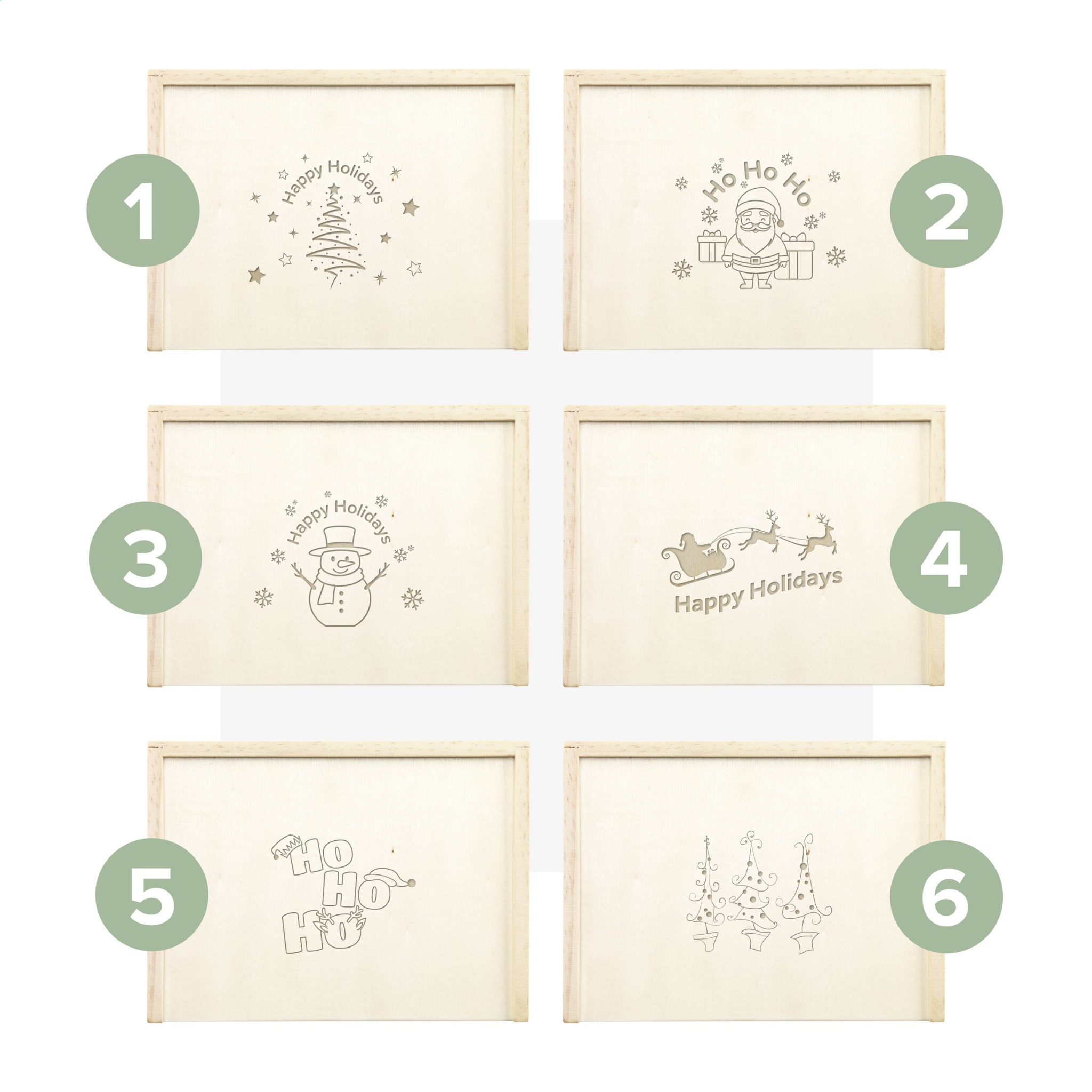 Vau! Kaksi korttipakkaa korkealaatuisesta kierrätetystä voimapaperista (250 g/m²). Tämä peli koostuu 52 pelikortista ja 2 jokerista. Säilytetty kierrätetystä kartongista valmistetussa laatikossa. Näiden korttien takapuolella on sama vakiokuva. Nämä korttipakat toimitetaan mäntypuusäilytyslaatikossa, jossa on liukuva kansi. - Tämä tuote on painettu tavallisella joulukuviolla. Valittavana 6 erilaista mallia kuvien mukaisesti. Suunnittelua ei ole mahdollista muokata.
