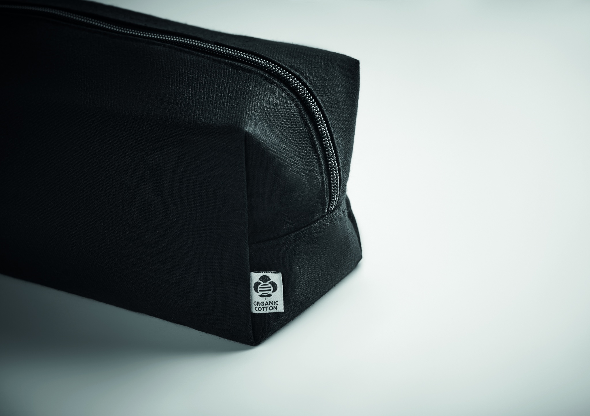Kosmetiikkalaukku vetoketjulla, materiaali 220 gr/m² orgaaninen puuvillacanvas. Vuori on 140 gr/m² luomupuuvillaa.