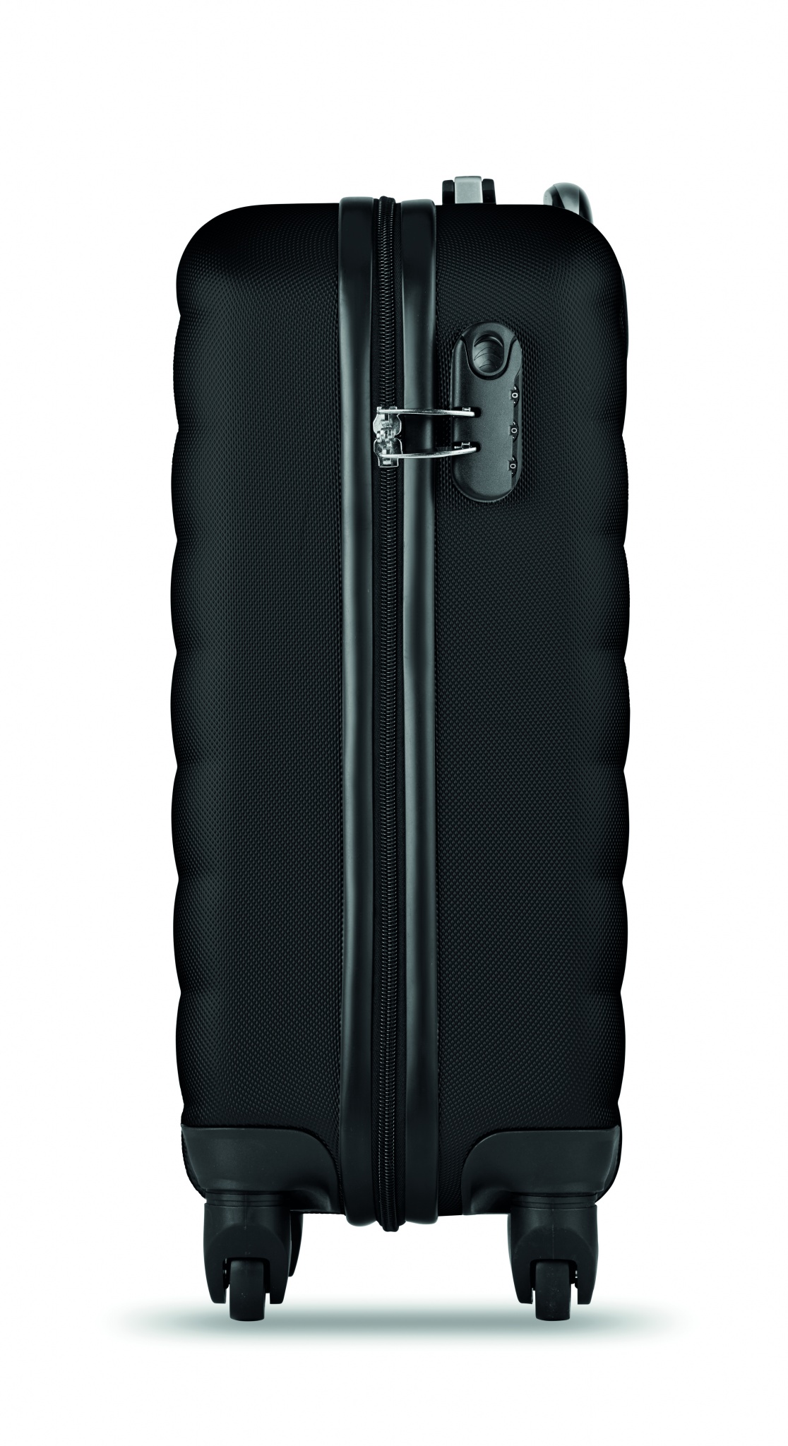 ABS- muovinen 20 tuuman kovakuorinen, sisältää turvalukon. Alla 4 pyörää.