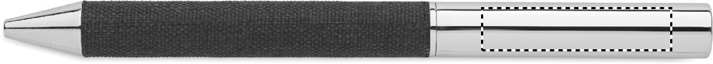 Metallinen kierrekuulakärkikynä, jossa on RPET-polyesteristä valmistettu yksityiskohta, lahjapakkauksessa. Sininen muste.