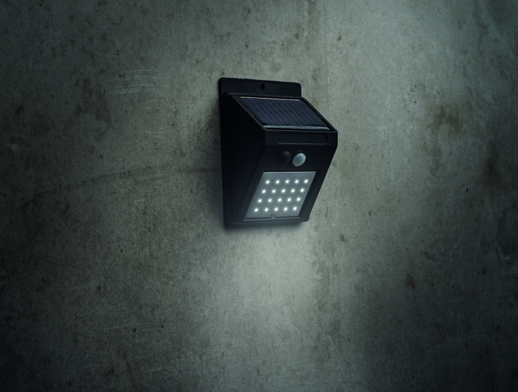 20 LED-aurinkovalaisin PP:stä, jossa on liiketunnistin ja himmenninkytkin. PIR (passiivinen infrapuna-anturi) liiketunnistin. CDS-yöanturi. Suojausluokka: IP 44. Pariston kapasiteetti: 800 mAh.