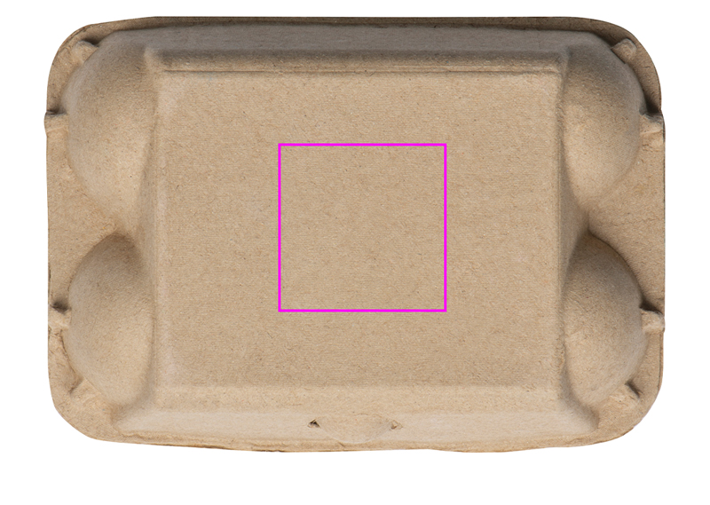 Liitumunat keltaisena, oranssina, punaisena, vihreänä, sinisenä ja violettina munapahvilaatikossa. Logosi painetaan kartongille.