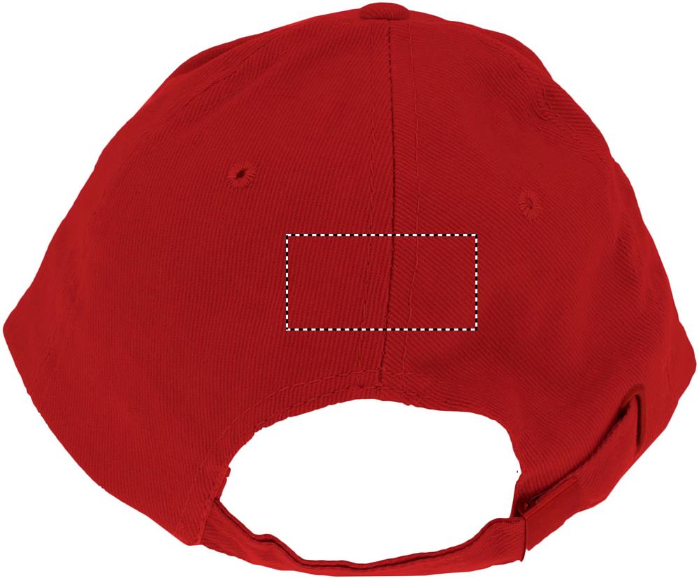 Toimikkaasta puuvillasta valmistettu kuusi paneelinen lippalakki, säädettävä kuparinen solki kiinnitys ja 6 samaan sävyyn ommeltua ilmareikää. Koko 7 1/4.