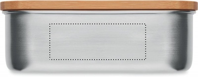 Ruostumattomasta teräksestä valmistettu 600 ml lounasrasia bambukannella ja kuminauhalla. Polyesterinen kuminauha pitää aterimet ja kannen paikoillaan. Luonnollisen materiaalin (bambu) vuoksi, tuotteiden värissä/ koossa saattaa olla erinäisyyksiä ja tämä voi vaikuttaa painatuksen lopputulokseen.