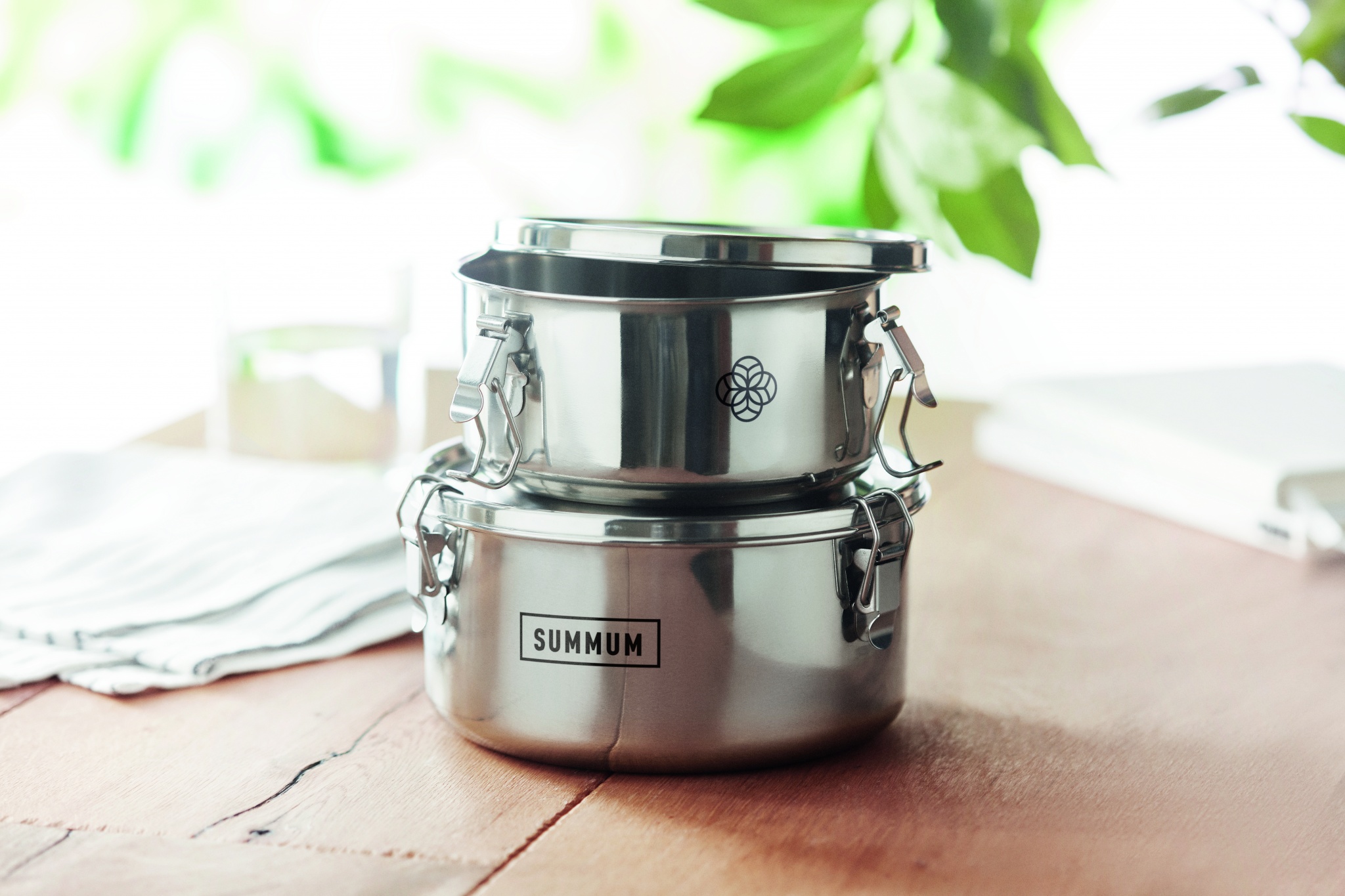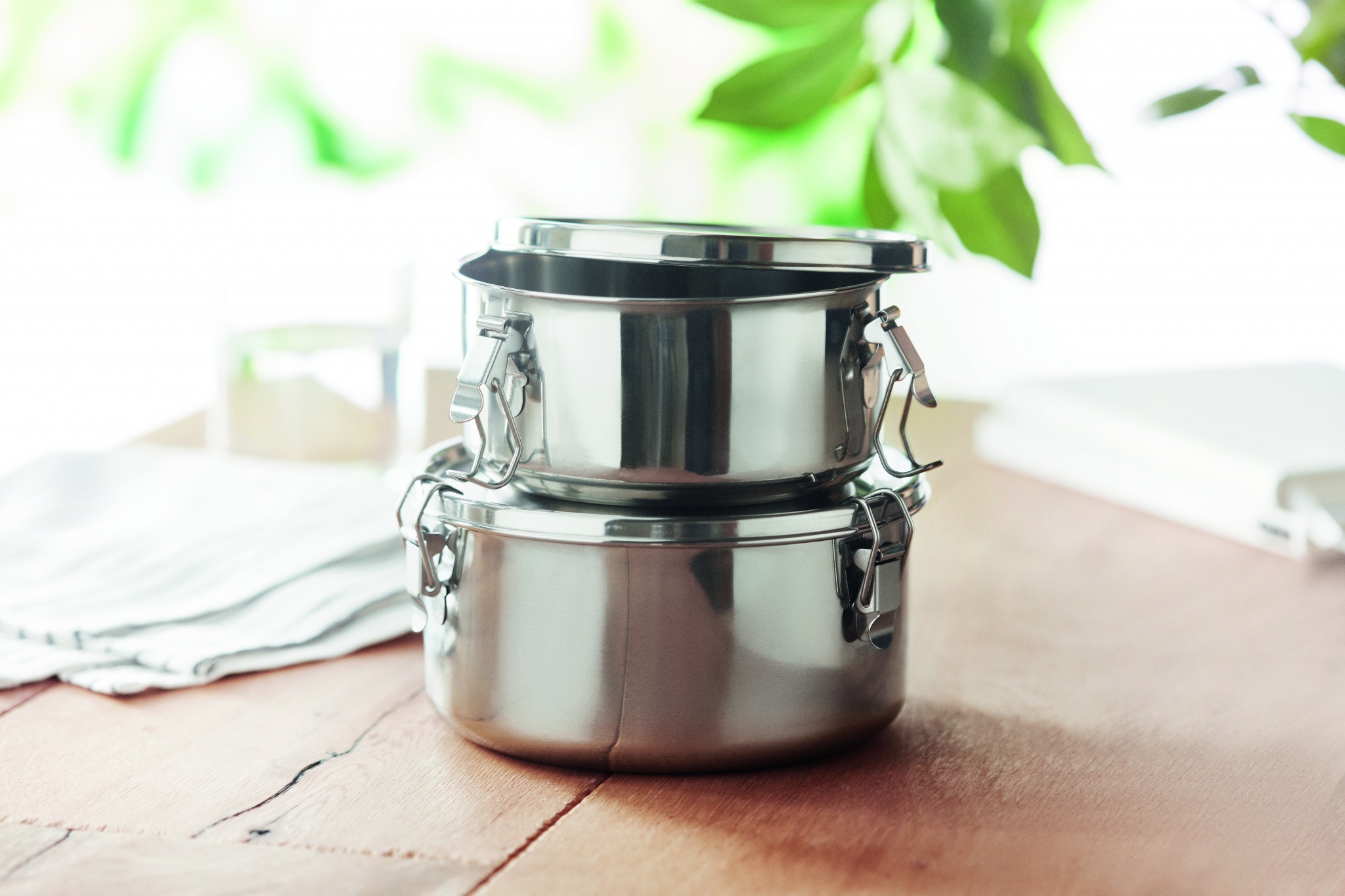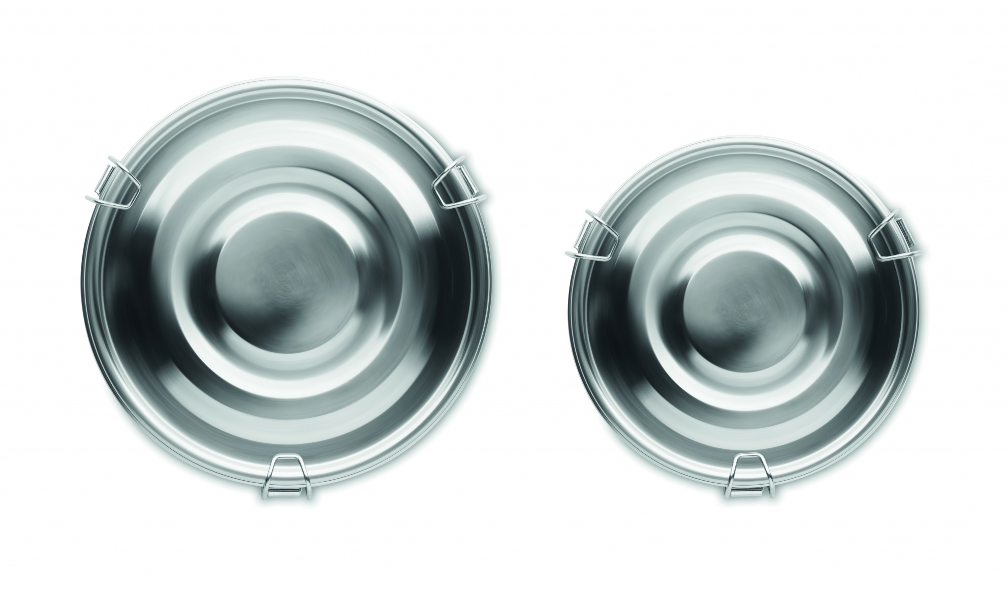 Ruostumattomasta teräksestä valmistettu lounasrasia setti. Lounasrasioiden tilavuus 450 ja 900 ml.
