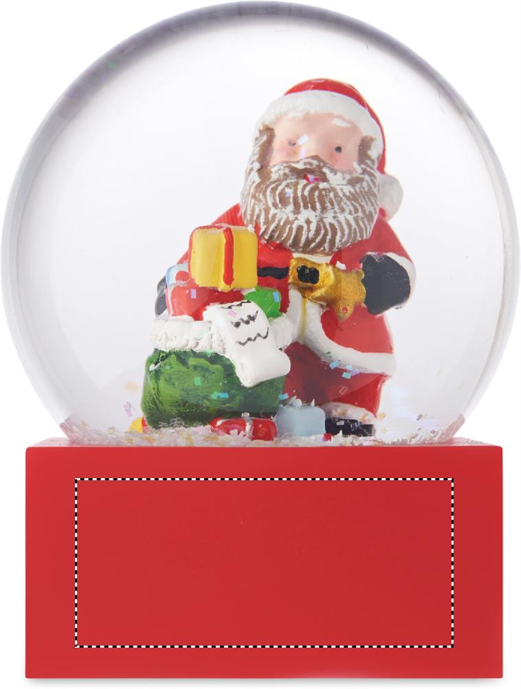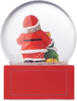 Jouluinen lasinen lumipallokoriste, jossa on polyresiinipohja.