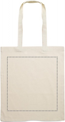 Ostoskassi pitkillä kahvoilla, materiaali luomupuuvillaa, 180 gr/m². Valmistettu EU:ssa