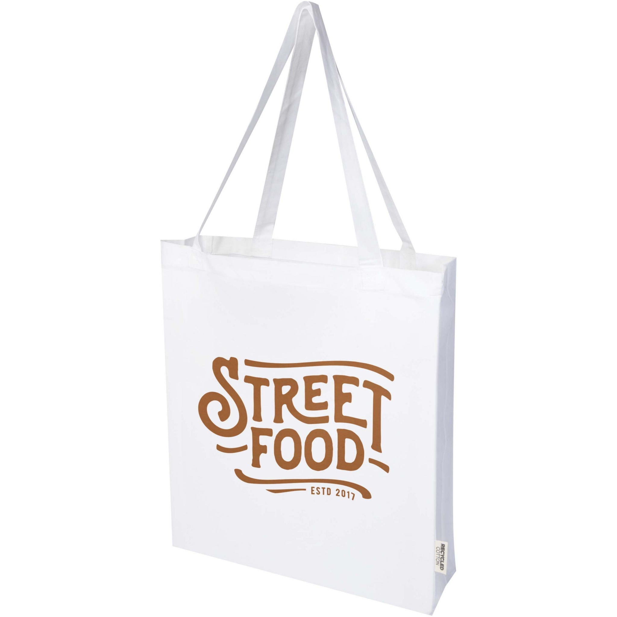 Madras 140 g/m² GRS-kierrätetystä puuvillasta valmistettu kassi levikkeillä, Valkoinen